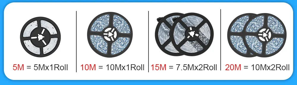 Для 5050 музыкальная посылка:5 м = 1*5 м10 м = 1*10 м15 м = 2*7,5 м20 м = 2*10 м30 м = 3*10 м