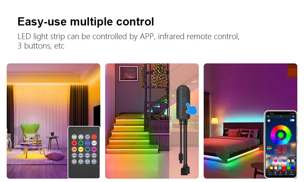 Вы можете установить таймер для включения/выключения светильник s с вашим любимым цветом, вы также можете управлять светильник полосы в пределах чувствительного расстояния 50 футов через приложение телефона