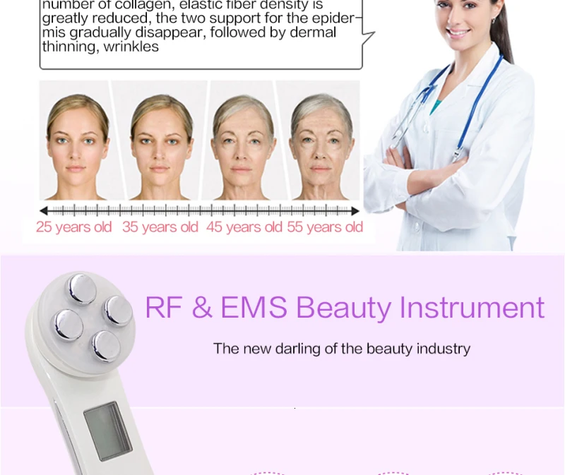 5 в 1 RF EMS электропорации Led фотон светильник терапия красота устройство против старения подтяжки лица Уход за глазами массажер для лицаХарактеристика:1. EMS током может активировать клетки и создать новый коллаген, наконец, сделать вашу кожу более твердой, более энергичной и эластичной, улучшить тонкие линии и морщины на поверхности кожи.2, технология электропорации может создать зазор между клетками в течение короткого времени, что делает кожу поглощать больше продуктов по уходу за кожей.3, радиочастота RF может облегчить боль в мышцах и усталость кожи, облегчить напряжение кожи, уменьшить покраснение, отек и боль, и противостоять повторному росту акне.4. Светодиодный светильник имеет розовый, желтый, зеленый, синий и розовый светильник с шестью режимами. Этот светодиодный светильник может отбеливать кожу, осветлять тон кожи, способствовать регенерации коллагена, подавлять чрезмерное производство меланина и контрактивных пор и т. Д.Продукт имеет 5 уровней интенсивности на выбор, вы можете настроить его в соответствии с типом кожи и личными предпочтениями.Этот косметический инструмент не токсичен, побочный эффект, безболезненный, подходит для всех типов кожи.Примечание: Встроенный светодиодный светильник не будет генерировать тепло.Спецификация:Материал: АБС-пластикВход: DC5V(500 мА)Мощность: максимум 10 ВтЕмкость аккумулятора: 850 мАчВремя зарядки: 3 часаВремя использования: 10 минут/времяВремя работы в режиме ожидания: 40 днейЦвет: белыйРазмеры: 17,3*4,2 см (Д * Ш * В)Посылка: (не реальная коробка)1 x косметический инструмент 1 x USB кабель1 зарядное устройствоРуководство пользователя (на английском языке)-1 шт.Этот косметический инструмент оснащен EMS током, технологией электропорации, радиочастотой RF и светодиодный, какой он многофункциональный, чтобы он мог решить многие проблемы кожи ems.