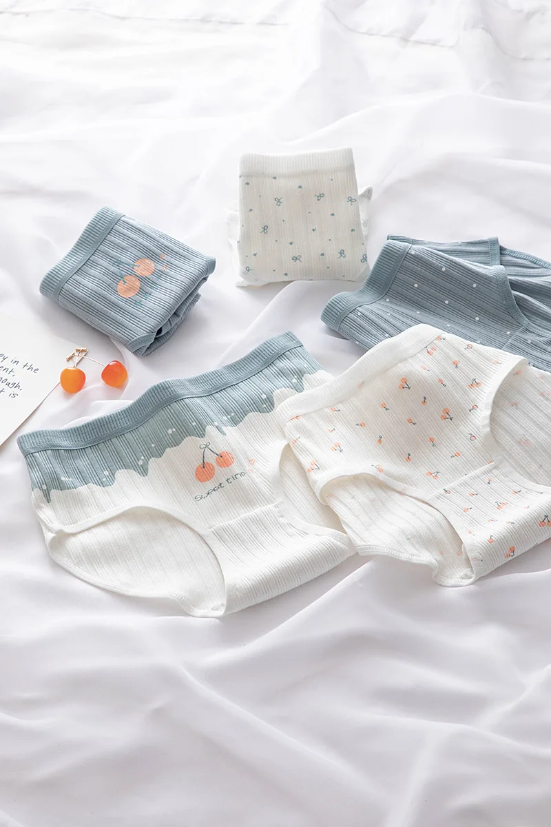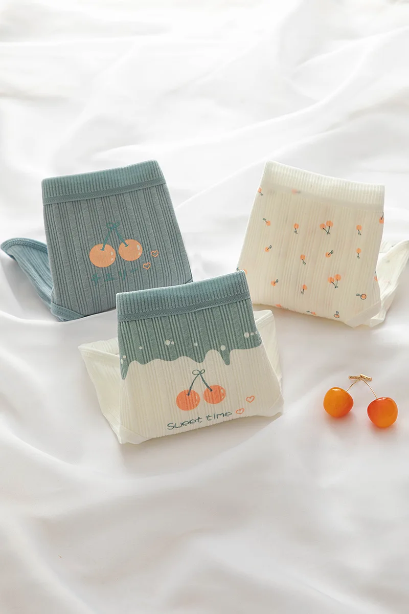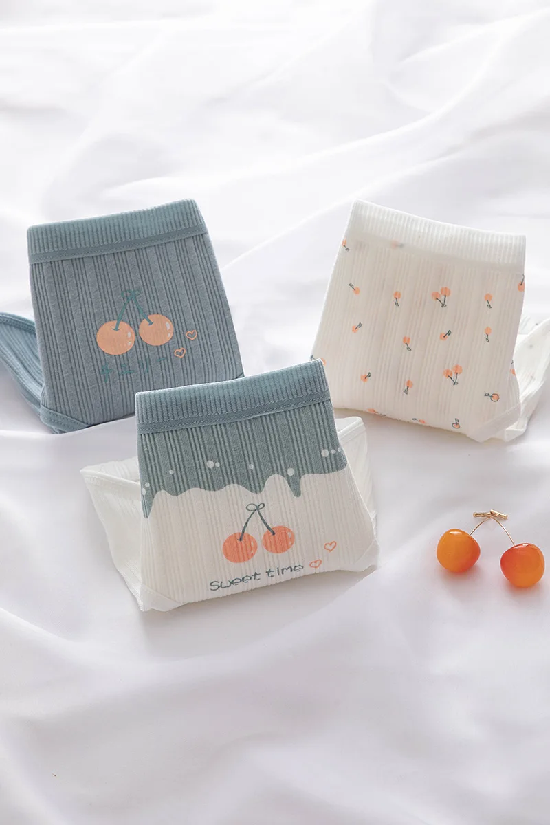 Симпатичные трусики, женские трусики, сексуальное женское нижнее белье, мягкое нижнее белье, хлопковые дышащие трусики, трусики с принтом вишни WDC474