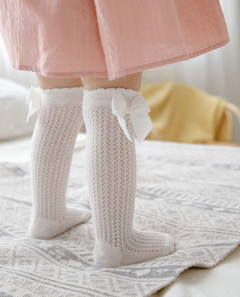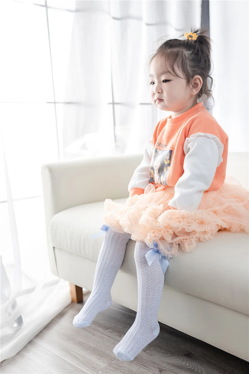 Детские носки в Королевском Стиле для девочек, высокие сетчатые носки с бантом, детские носки с бантом, детские носки с вырезами, размеры