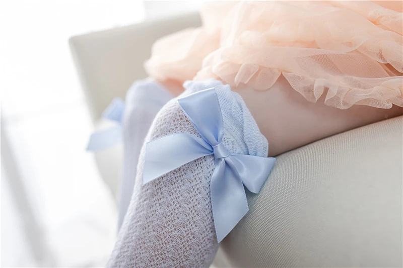Детские гольфы в сеточку с бантом в Королевском Стиле для девочек; Носки с бантом для малышей