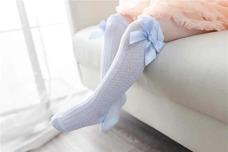 Носки для маленьких девочек, хлопковые летние сетчатые, с бантом, д...