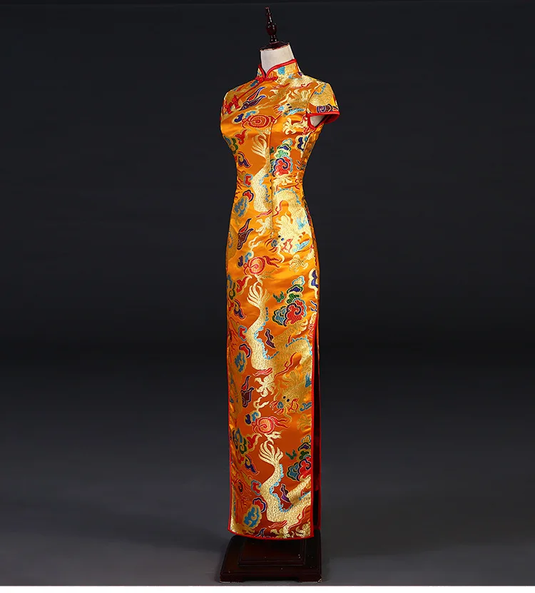 Элегантное женское новое длинное изысканное китайское вечернее платье в стиле Ципао, привлекательное приталенное винтажное восточное платье в стиле Ципао