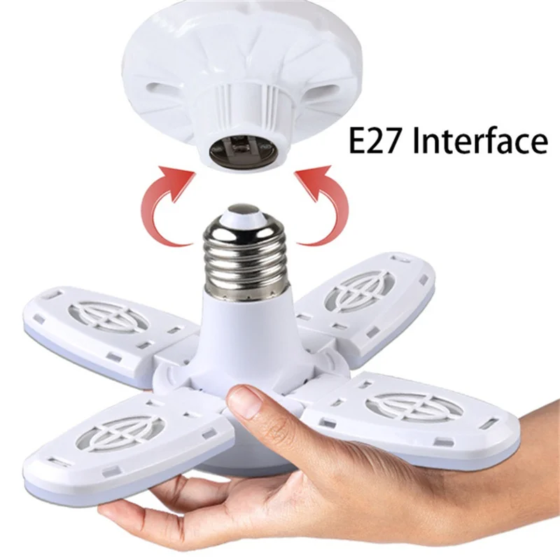 E27 светодиодная лампочка с лопастями вентилятора, лампа с таймером, складная светодиодная лампочка 28 Вт, лампочка для домашнего потолочного светильника