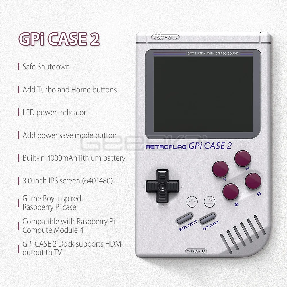 Чехол GeeekPi Retroflag GPi 2 для Raspberry Pi CM4, с ЖК-дисплеем 3,0 дюйма и литий-ионной перезаряжаемой батареей 4000 мАч, зарядный порт Type C