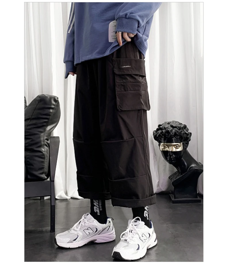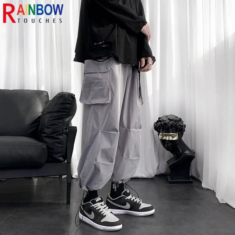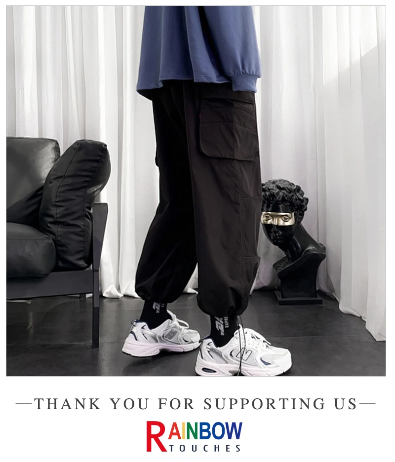 ItemFashion Brand Mens Cargo Pants Casual Tie Feet Trousers Solid Color Oversize Style Boys Overalls Superior Quality
