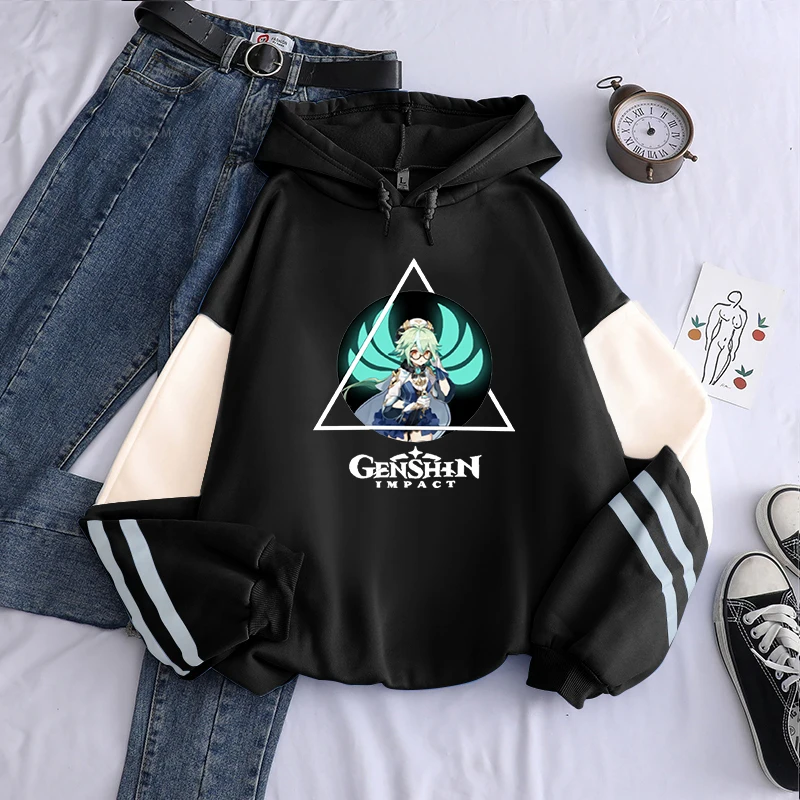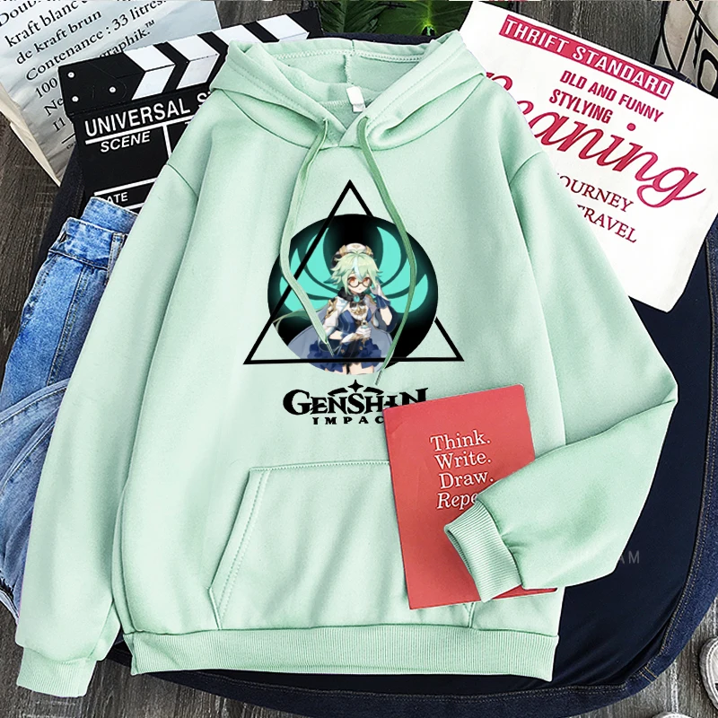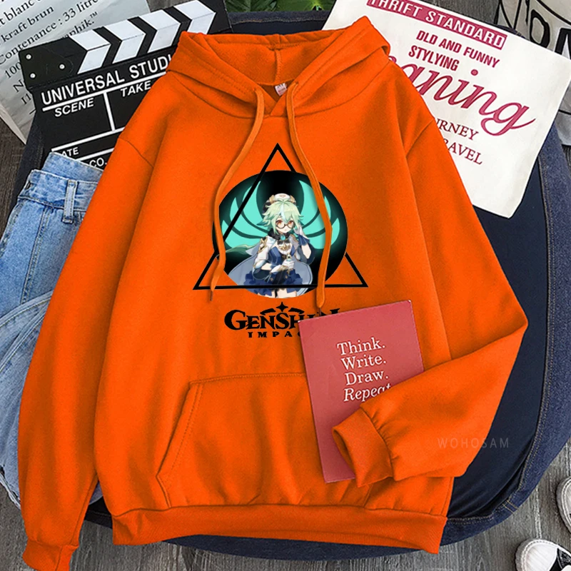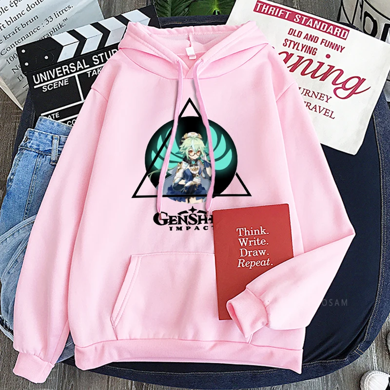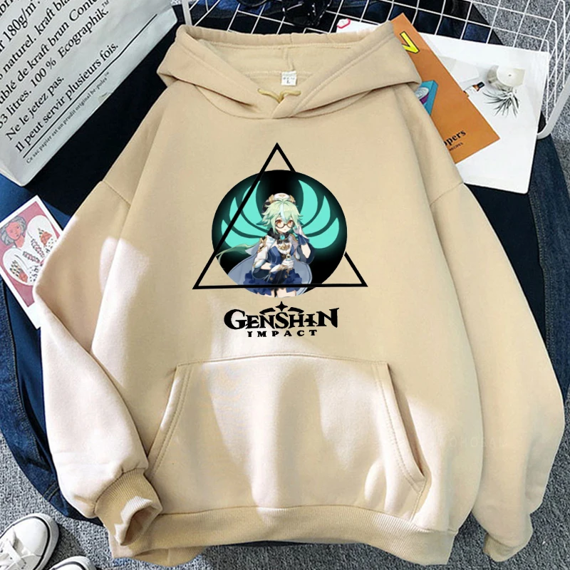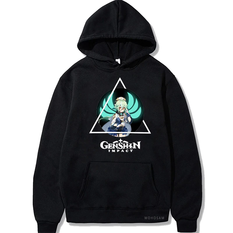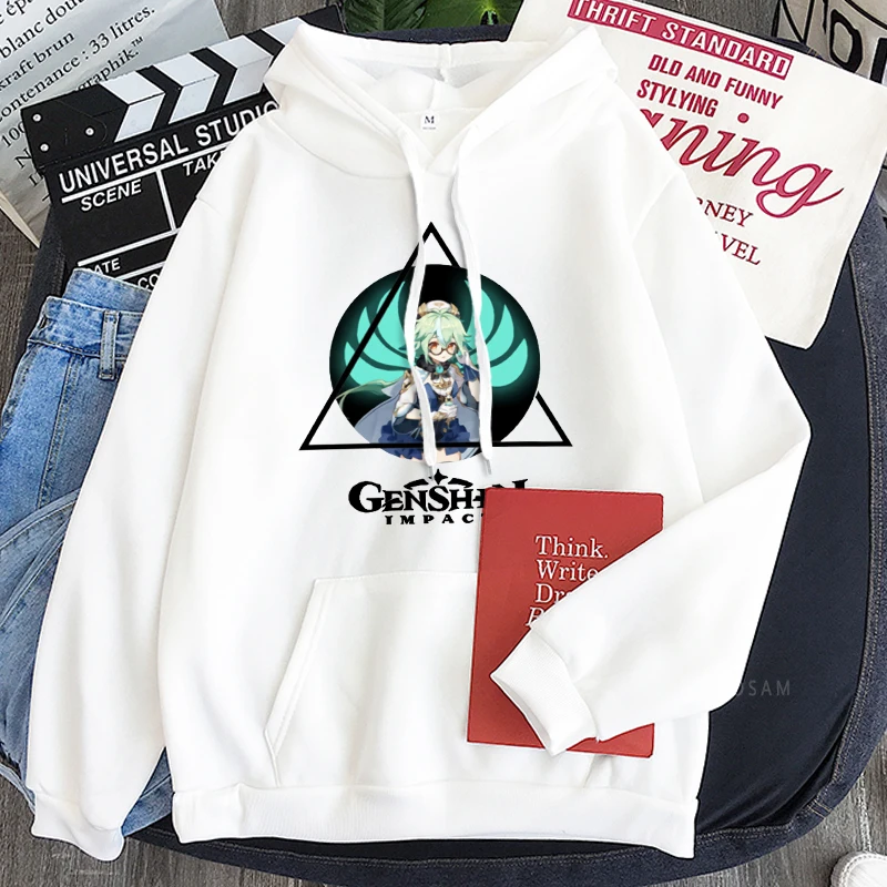 Толстовка в стиле Харадзюку для мужчин и женщин, свитшот с рисунком героев мультфильма Genshin Impact и кавайным принтом сахарозы, зимняя уличная одежда оверсайз в стиле хип-хоп с длинным рукавом
