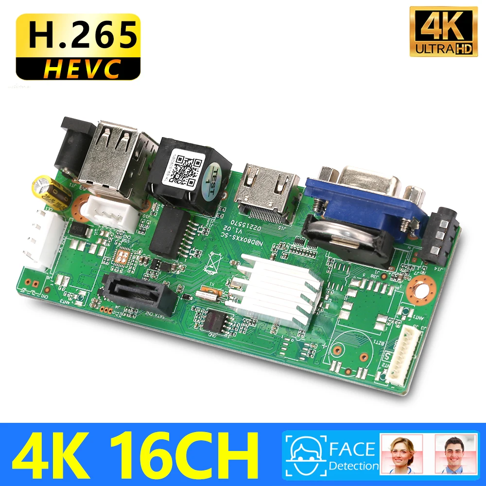 Материнская плата NVR 10CH 16CH Mstar Chip 4K H.265 + сетевой видеорегистратор для IP-камеры 2 Мп 3 Мп 5 Мп 8 Мп с поддержкой распознавания лица