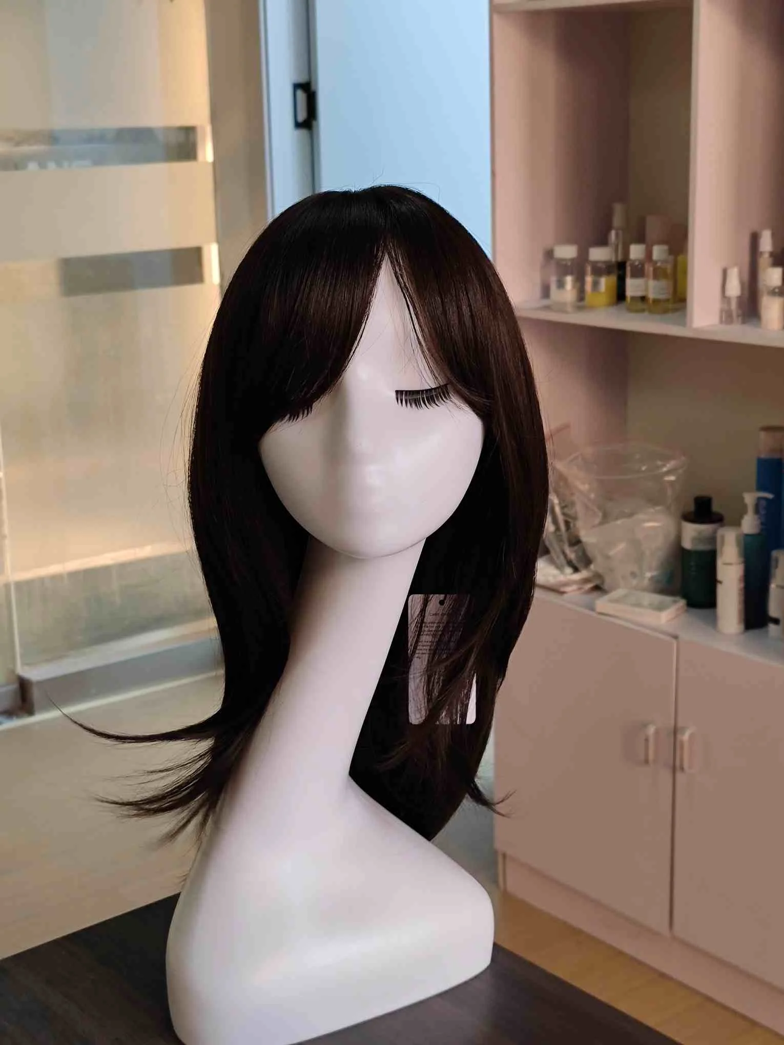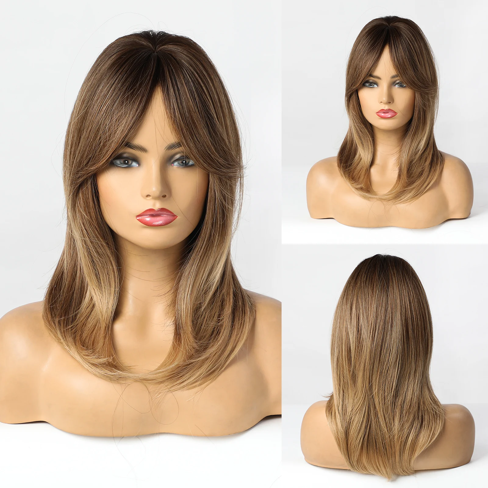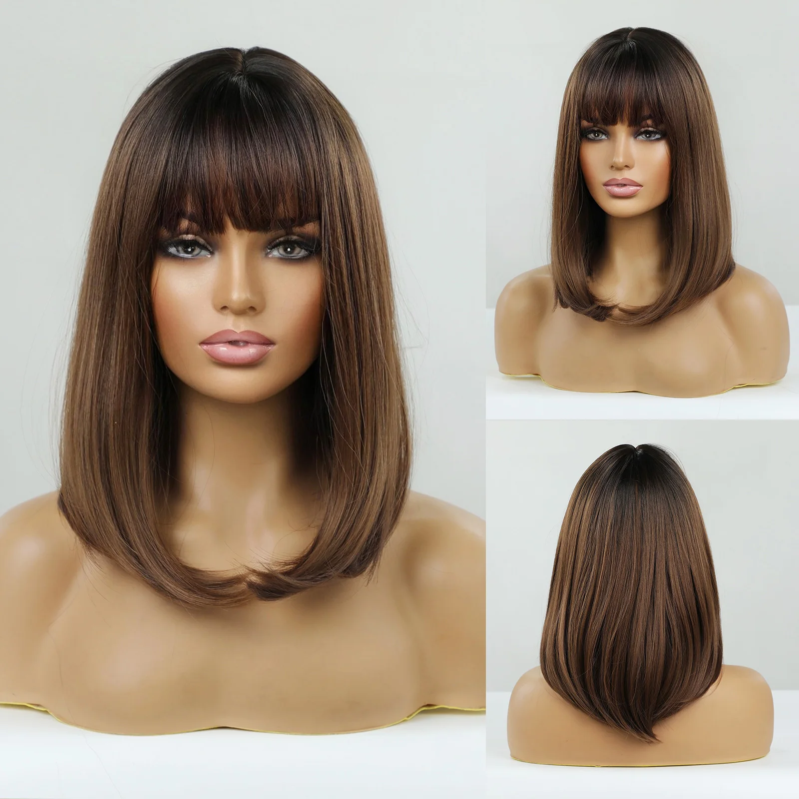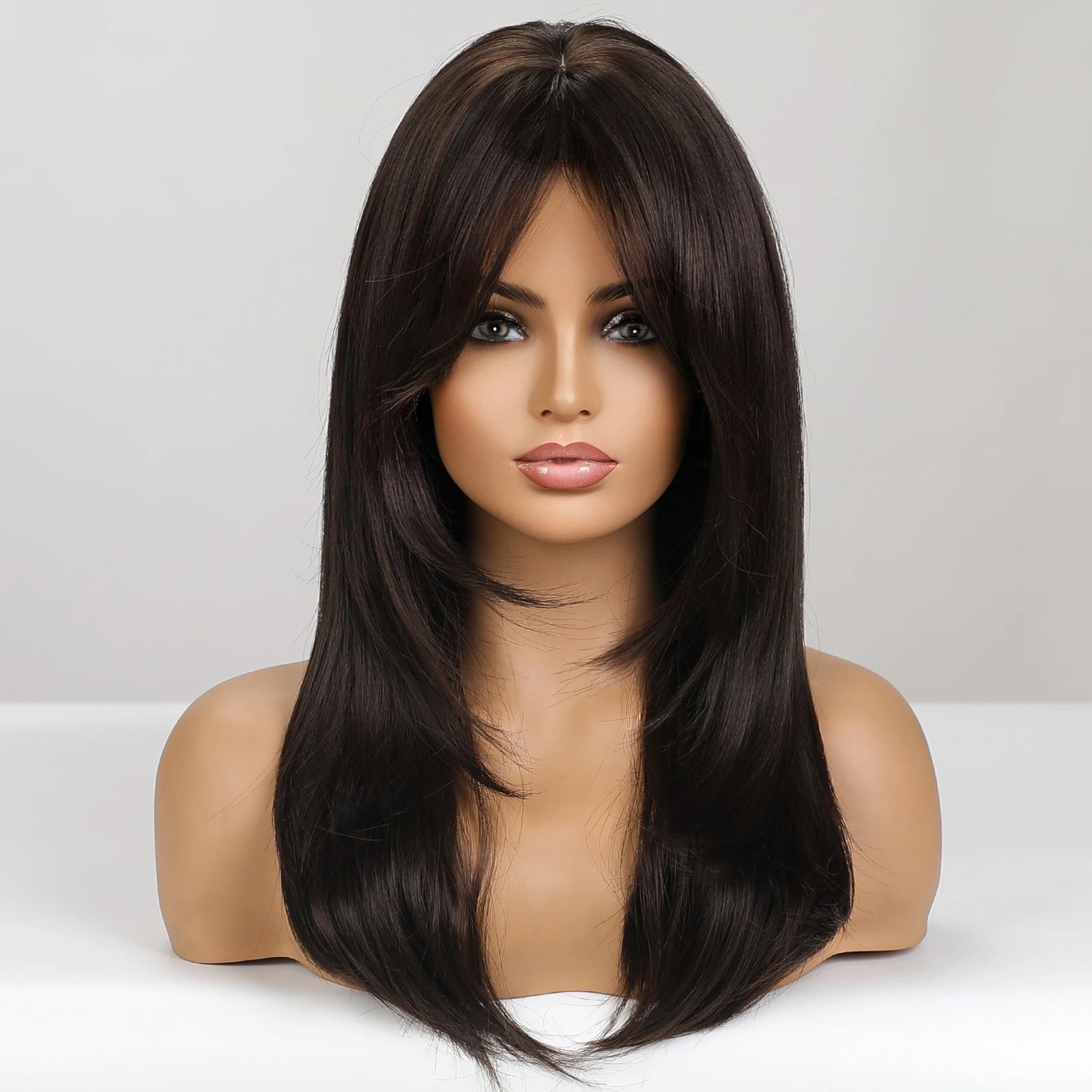 Парики синтетические средней длины, темные черно-коричневые с боковой челкой, термостойкие натуральные Многослойные искусственные волосы для женщин, косплей