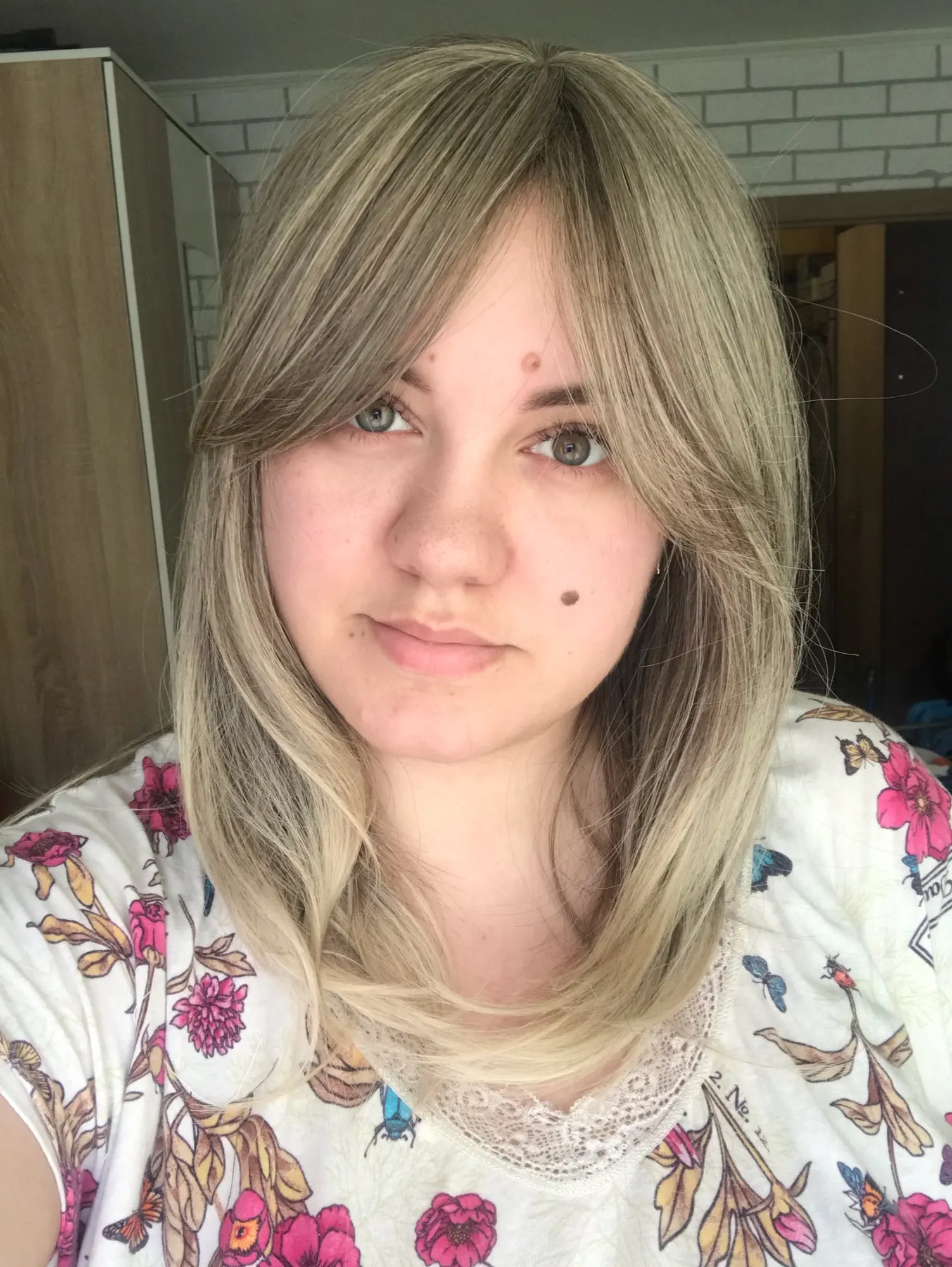 Парик понравился! Качество на высоте! Волосы и челка набиты плотно! Рекомендую! Но цвет отличается от фото продавца. Я ожидала, что парик будет серый, в итоге имеем то, что приложила на фото - пепельный с мелированием цвет