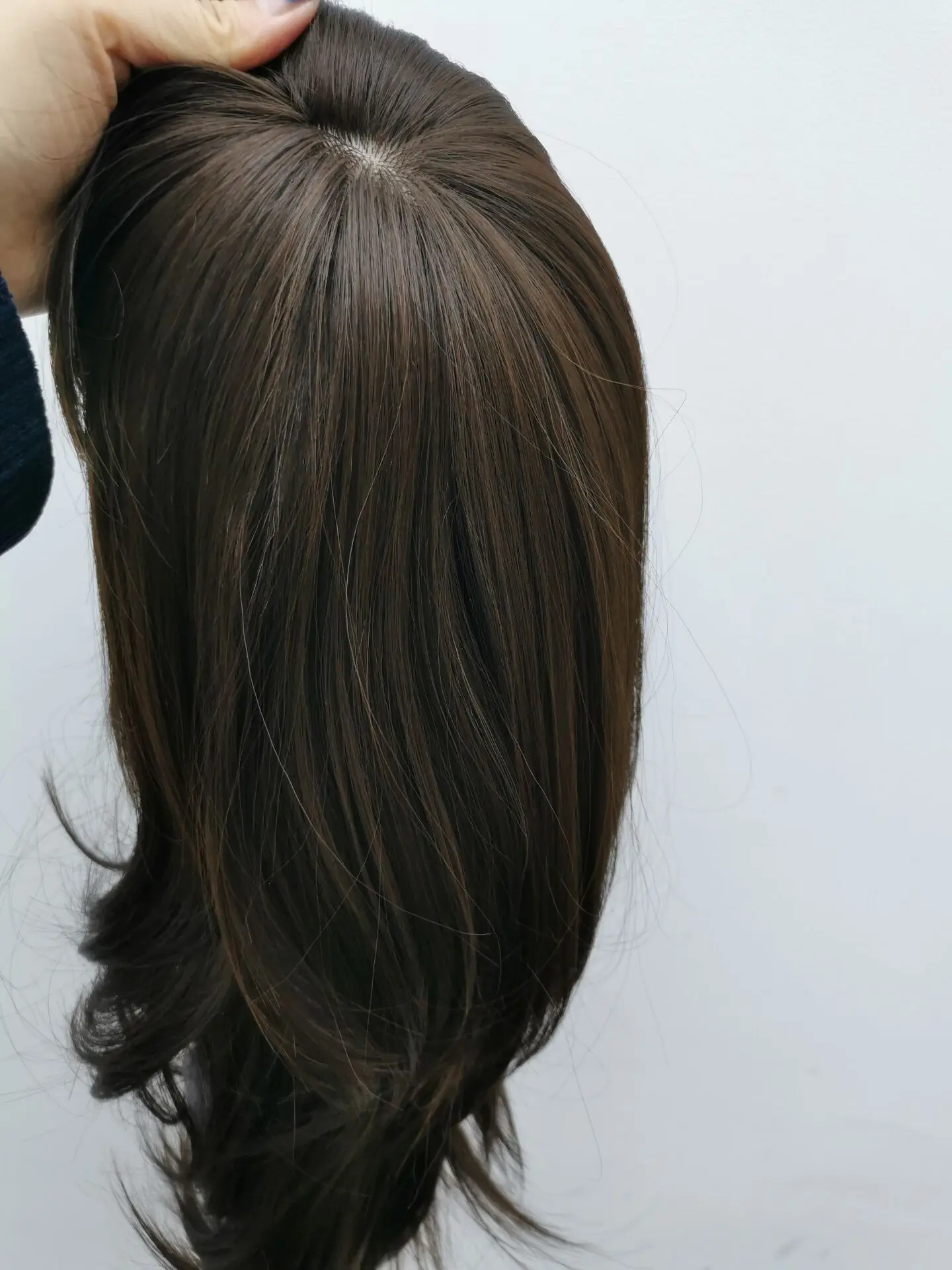 Синтетические парики средней длины темно-черно-коричневый парик с боковой челкой натуральные Многослойные поддельные волосы для женщин Косплей термостойкие