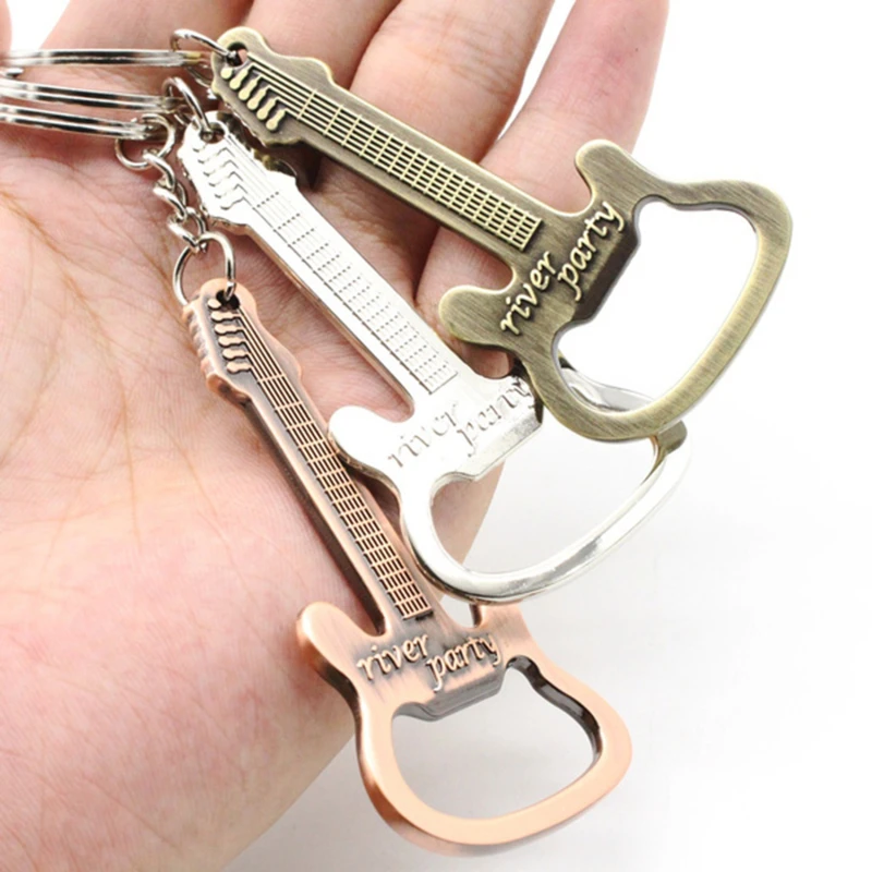 Подарочный брелок в форме гитары для влюбленных музыки брелки для ключей открывалка для пива мужские брелки для ключей ювелирные изделия брелок для автомобиля сумки кольца держатель