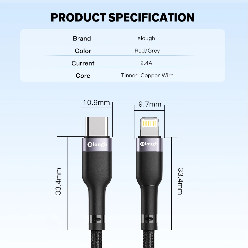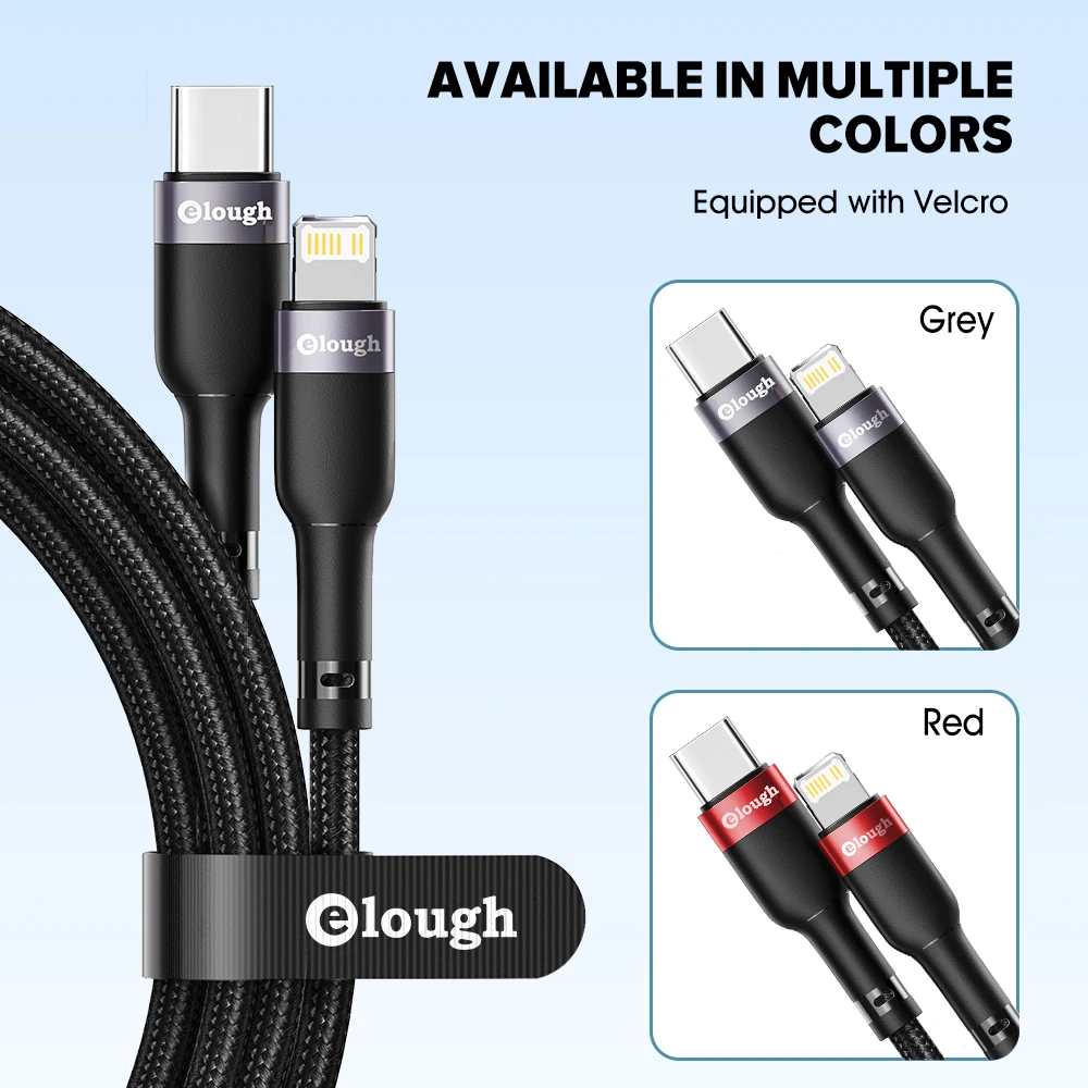Кабель зарядный Elough с разъемами USB Type-C и Lightning, 20 Вт