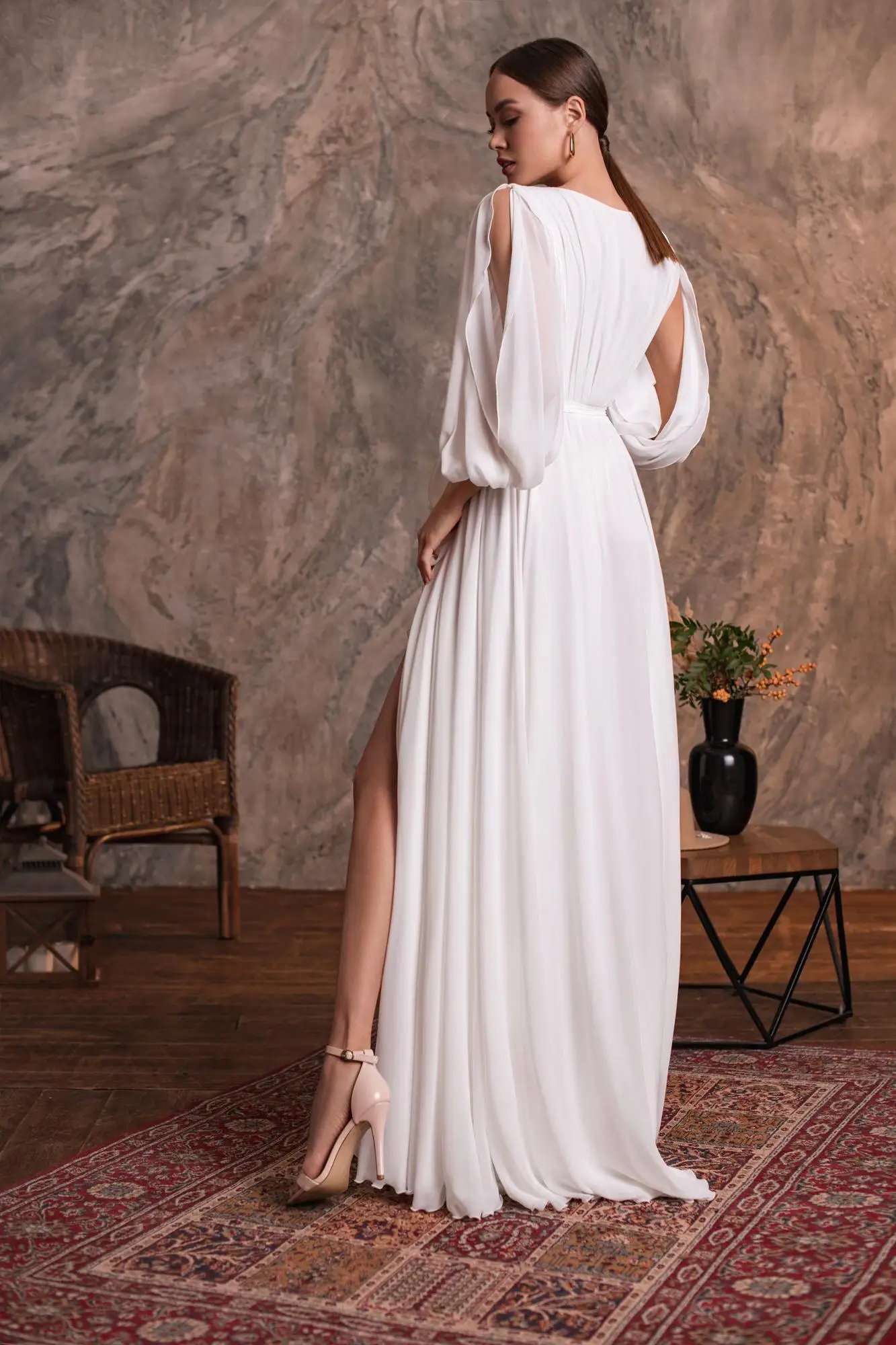 Женское шифоновое вечернее платье без рукавов, белое длинное платье с V-образным вырезом и молнией на спине, платье для особых случаев, 34
