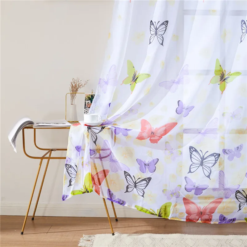 Занавески с бабочками для гостиной, спальни, домашний декор, вуаль, зеркальные шторы для кухонных окон, драпировка, изготовление на заказ