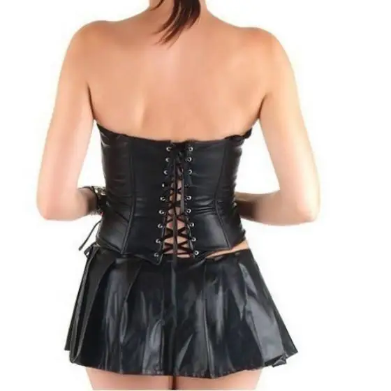 Женское черное нижнее белье, корсет из искусственной кожи в стиле стимпанк