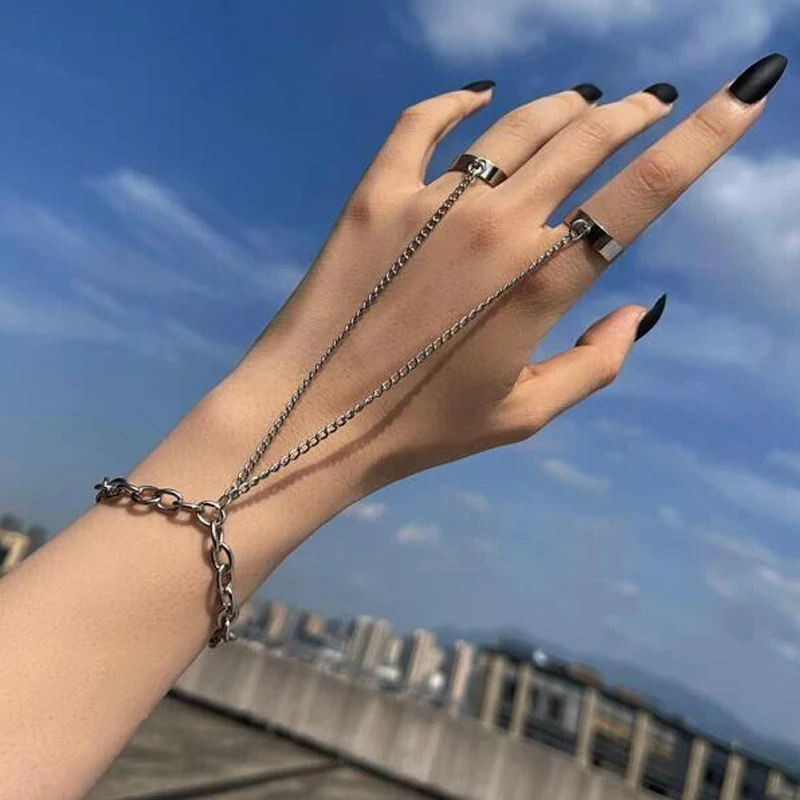 Кольца в стиле панк для женщин и мужчин, кольца на цепочке в стиле ...