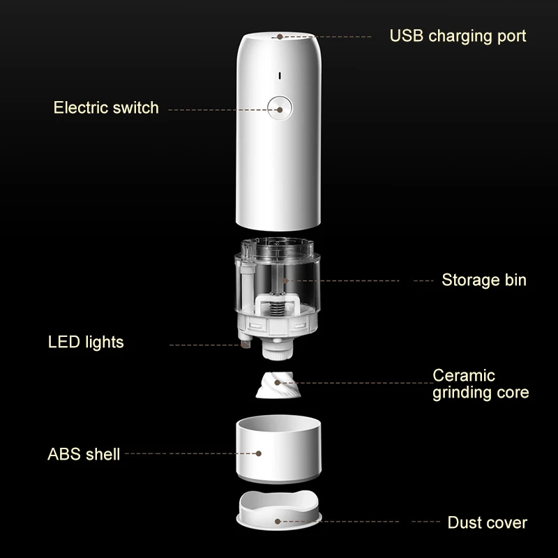 Портативная электрическая мини-кофемолка VOCORY с зарядкой от USB, керамическая кофемолка с сердечником, измельчитель кофейных зерен, банка для специй, для перца, для кухни