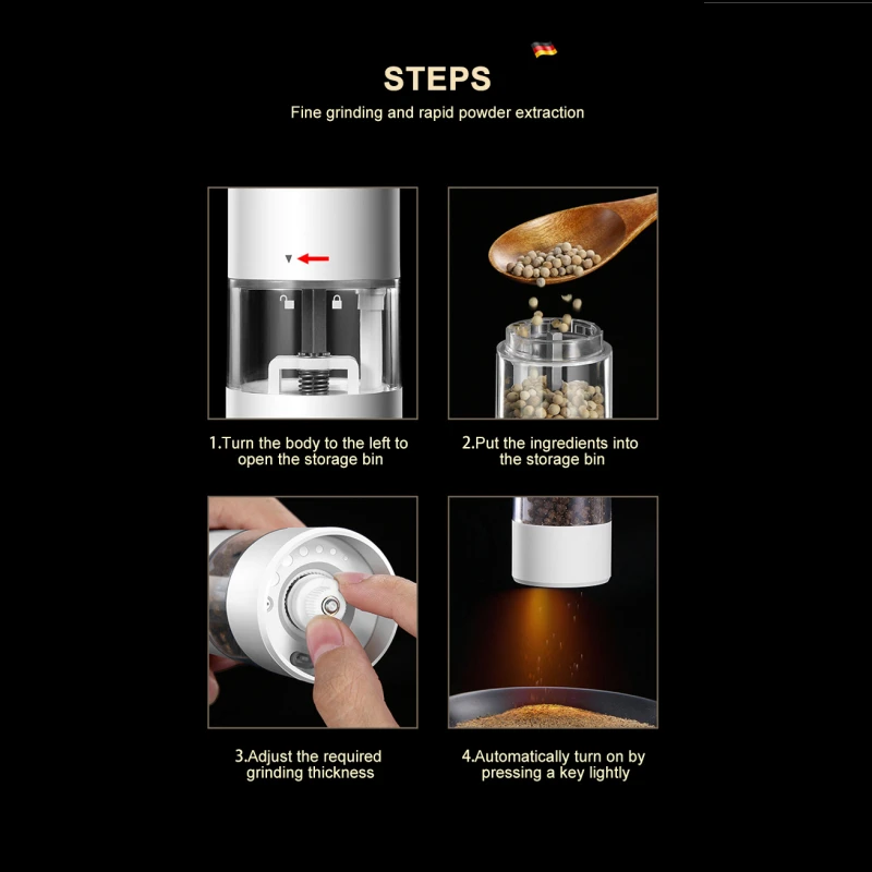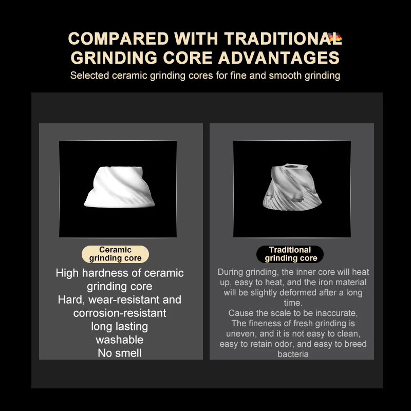 ● 【Portable】мини-размер, удобное хранение, также подходит для путешествий● 【Аккумулятор большой емкости 】аккумулятор 500 мА · ч можно заряжать один раз в неделю при нормальном использовании. Кроме того, используется порт для зарядки с помощью ленты, что делает зарядку более быстрой и удобной и безопасной● 【Свободный контроль толщины 】с помощью ручки для контроля толщины кофейных зерен, легче контролировать толщину нужных молотых кофейных зерен● 【Керамический шлифовальный материал 】 керамический шлифовальный сердечник не легко нагревается, уменьшает потери вкуса, уменьшает извлечение разного запаха, Измельчающие детали могут быть очищены, не так просто оставить запах● 【Легко чистится 】бобовые ящики и порошковые ящики отделяются от стирки● 【Широко используется 】 может быть использован для приправ измельчения, таких как перец, морская соль, кофе в зернах и так далее