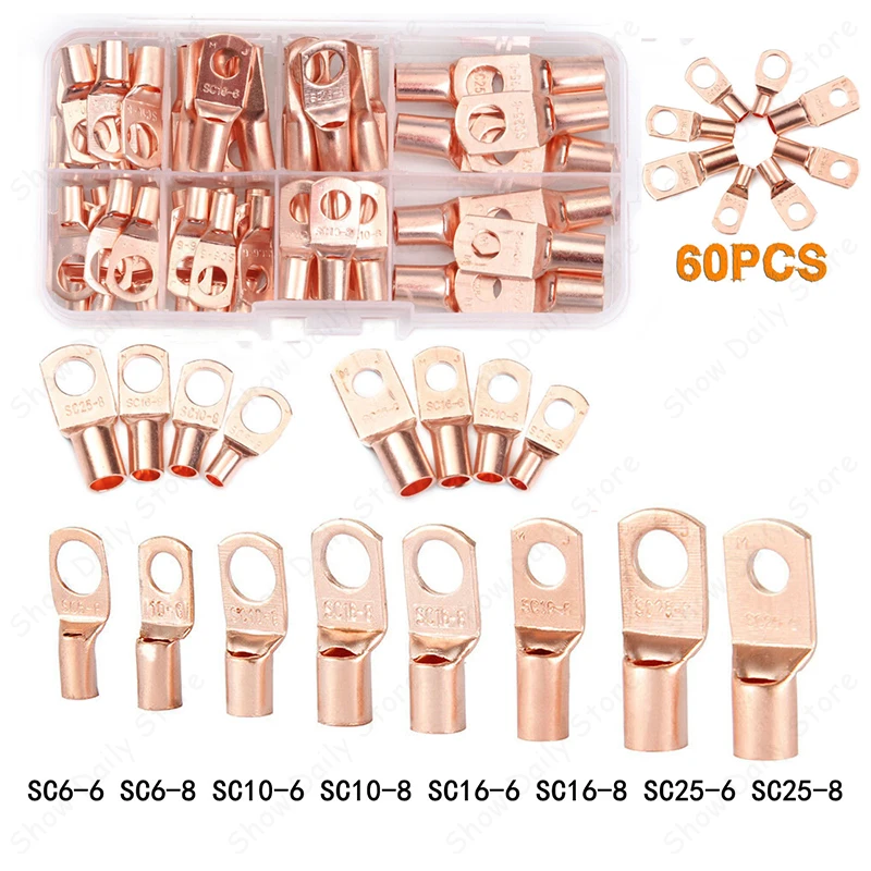 60 шт батарея голые медные кольцевые наконечники соединитель провода Датчик SC6-25 комплект