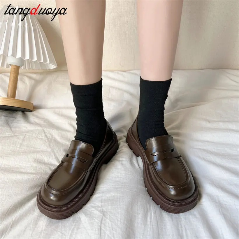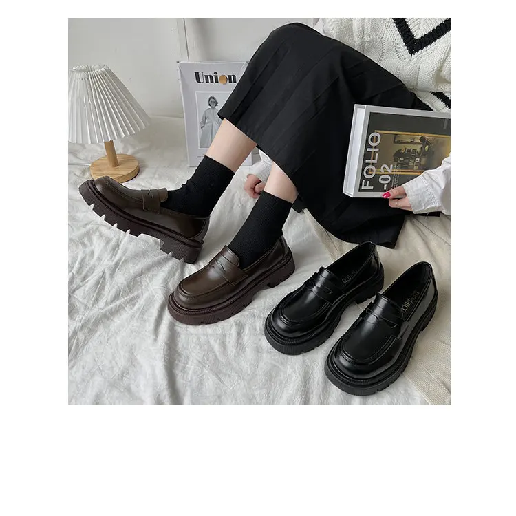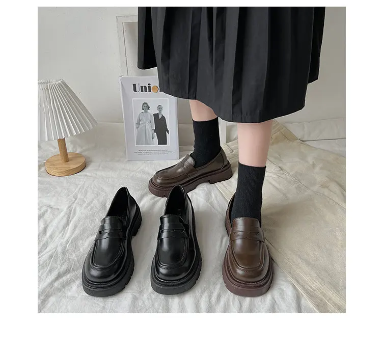 Туфли женские в японском стиле, лоферы, Униформа, повседневная обув...