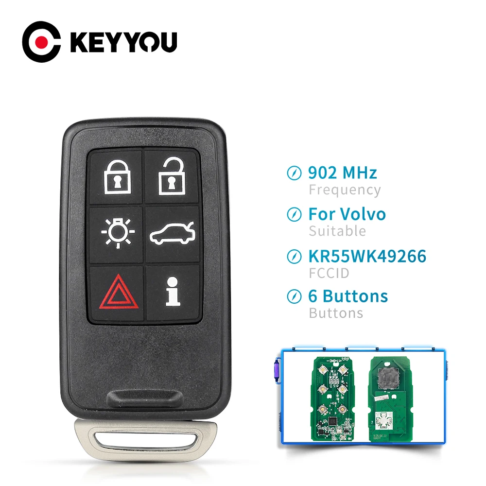 KEYYOU 6 кнопочный KR55WK49266 433434902 Мгц дистанционный Автомобильный ключ для VOLVO S60 S80 V40 V60 V70 XC60 XC70 2007-2016 автоматический смарт-ключ