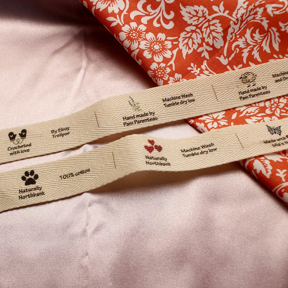 100% хлопок саржевая лента, плоские или сложенные пользовательские печатные этикетки ткани.