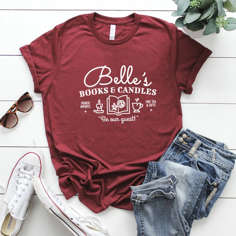 Рубашка для чтения книг и свечей Belle's, мультяшная рубашка Moive, рубашка для книг, рубашка для чтения, для влюбленных, графическая футболка для книг в подарок