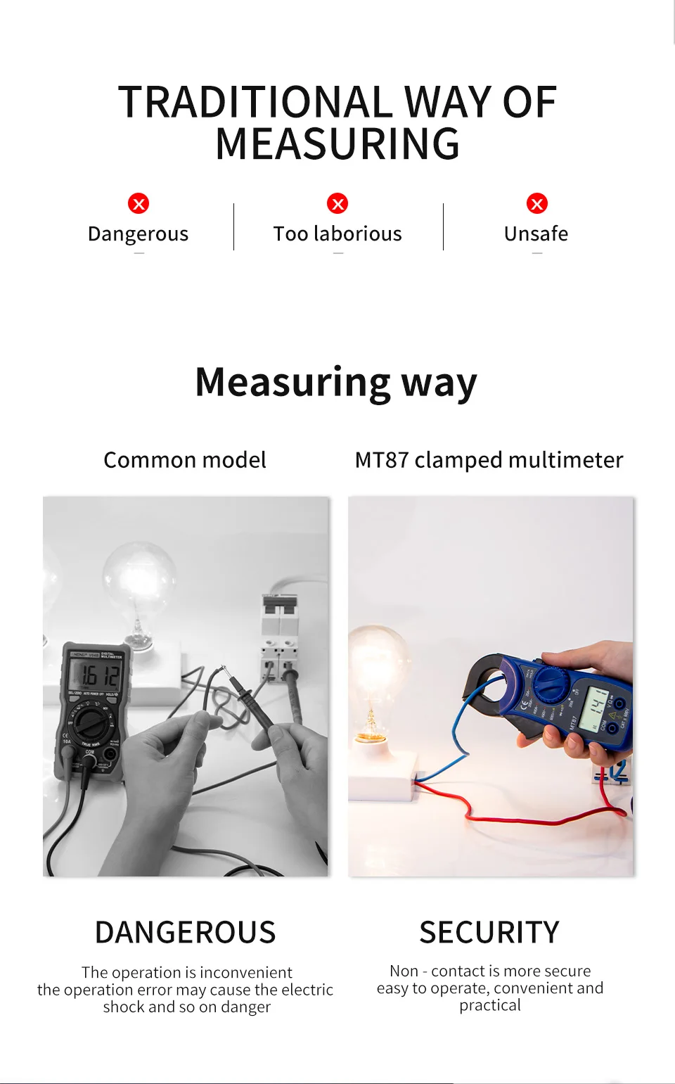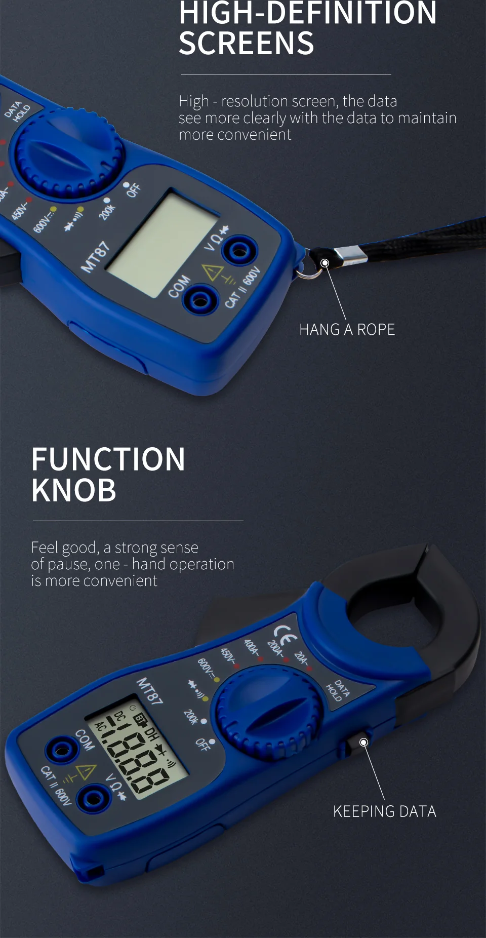 Цифровой мультиметр-зажим MT87, портативный измеритель переменногопостоянного тока, с ЖК дисплеем