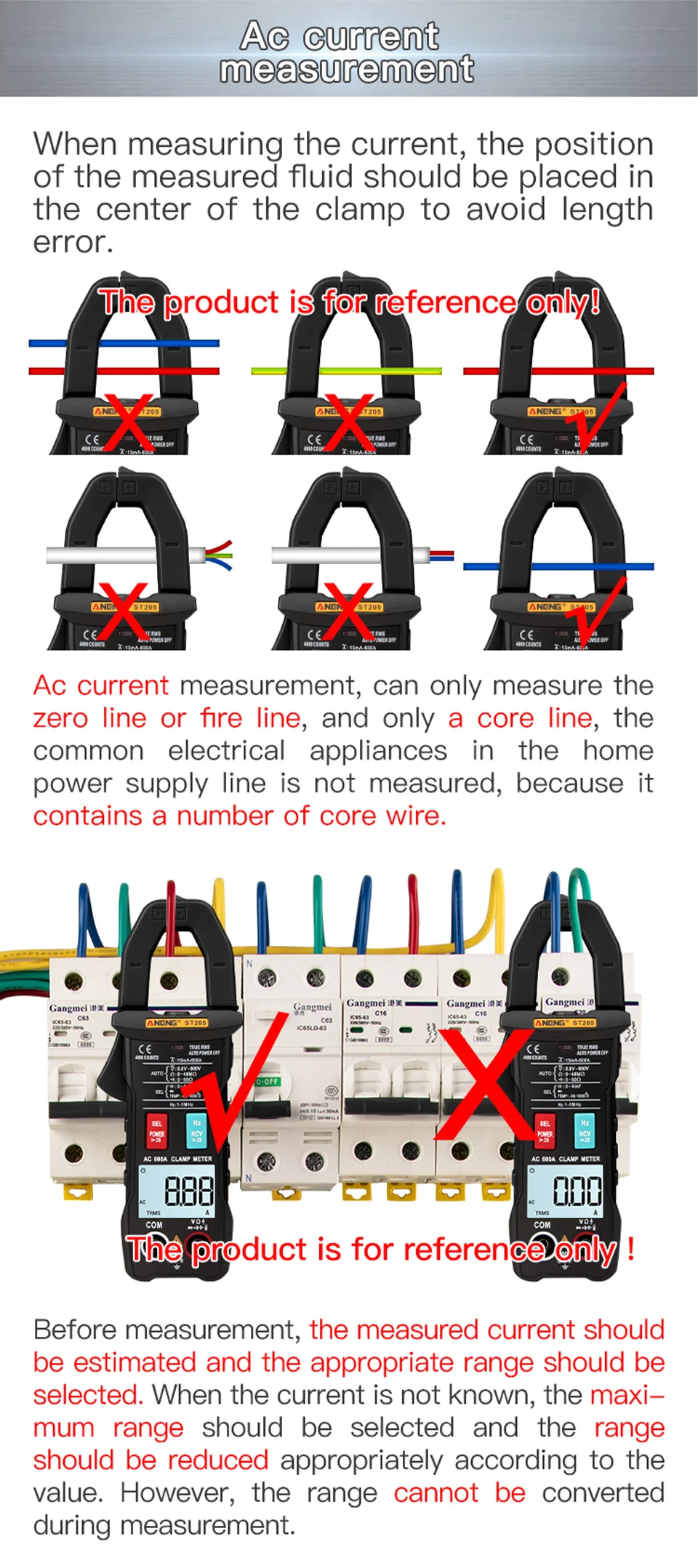 Особенности:1. Цифровой ЖК-дисплей с максимальным считыванием 1999 отсчетов (цифровой мультиметр)2. Хранение данных для удобного чтения3. Индикация низкого заряда батареи4. Защита от перегрузки5. Постоянный ток/переменный ток (Измерение переменного тока)6. Измерение диодовСпециальная функция:7. ЖК-дисплей, максимальное считывание 19998. Индикатор низкого заряда батареи9. Перегрузка10. Легче считывать данные11. Звуковой сигнал, выключение и функция тестирования диодов12 стандартных аксессуаров: мультиметр, Тестовые провода, руководствоХарактеристики:1. Название продукта: Цифровой мультиметр2. Напряжение постоянного тока: 600 В, ± 1.0%3. Напряжение переменного тока: 450 в, ± 1.2%4. Переменный ток: 20-200-400A,± 2.0%5. Сопротивление (Ом): 200 кОм, ± 1.0%6. Диодная Функция: Да7. Зуммер: Да8. Максимальный ЖК-дисплей: Да9. Функция удержания данных: Да10. Максимальный дисплей: 1999 отсчетов11. Тип батареи: 2x1,5 V (батарея ААА) (не входит в комплект)12. Цвет: синий/красный/желтый13. Материал: пластик, электронные детали14. Размеры (Д х Ш х В): около 15,00x7,00x3,00 см/5,91x2,76 x 1.18in15. Диаметр челюсти: около 21.21,3 мм