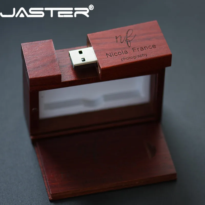 USB флеш-накопитель JASTER, деревянная коробка, карта памяти, бесплатный Пользовательский логотип, ручка-накопитель, квадратная деревянная флешка, 128 Гб 64 ГБ 32 ГБ 16 ГБ 8 ГБ 4 ГБ, креативный свадебный подарок