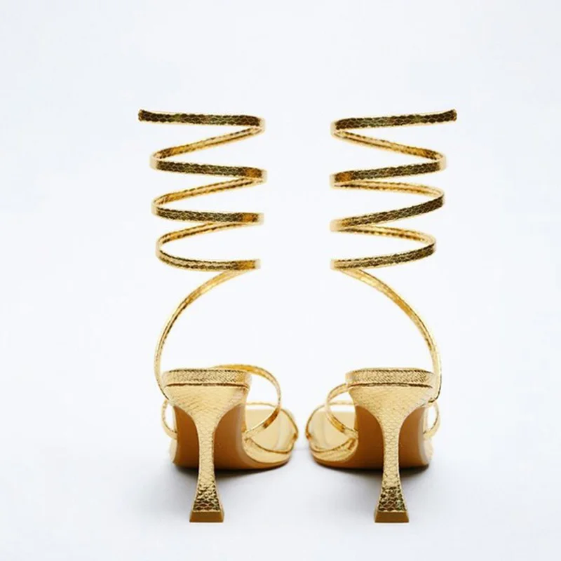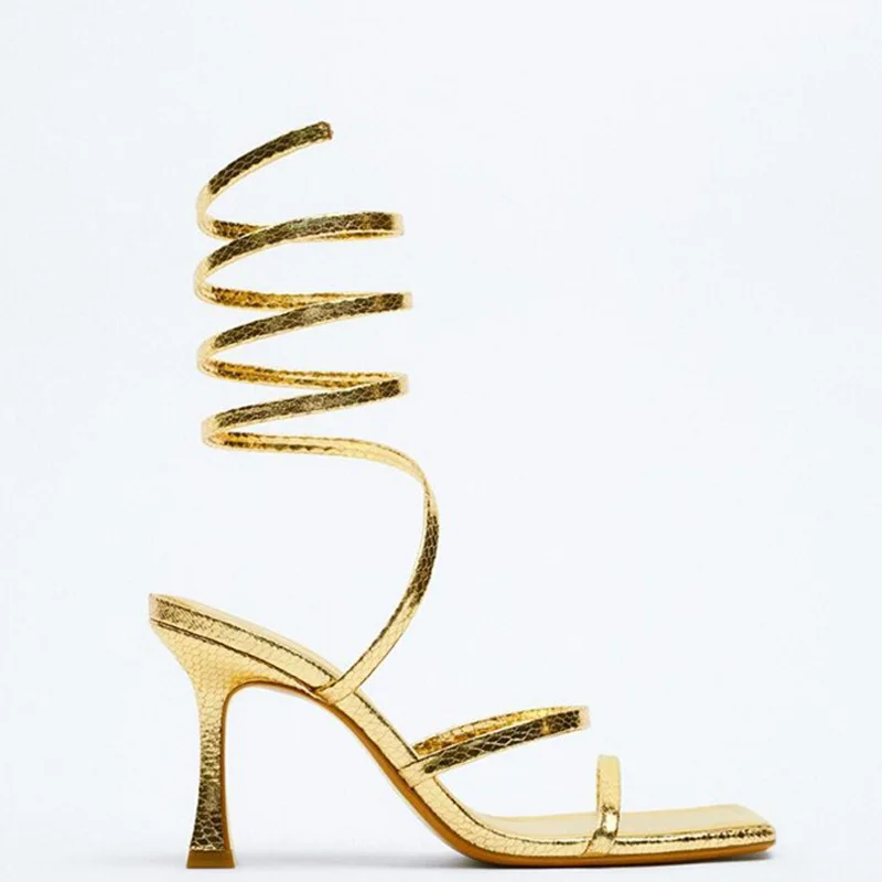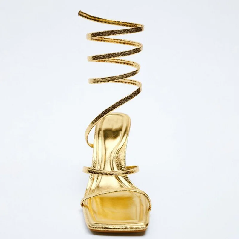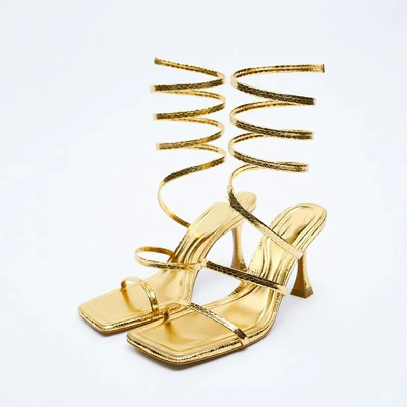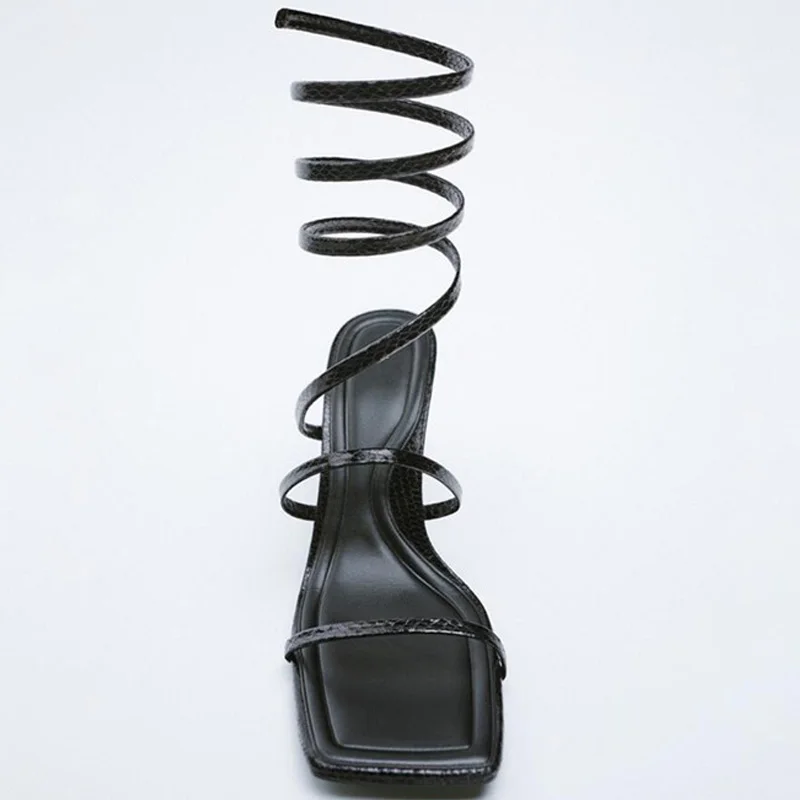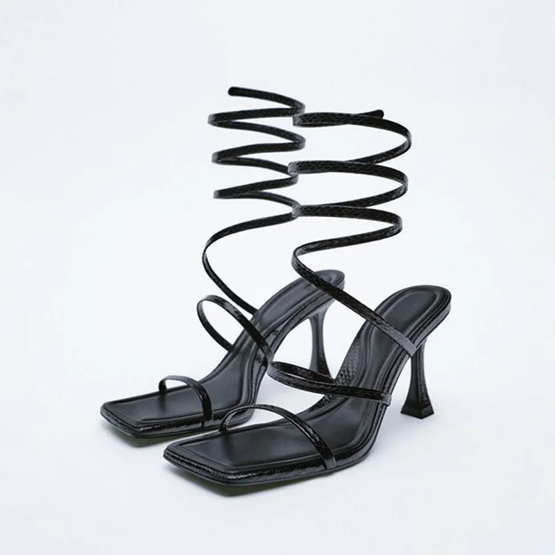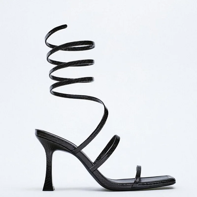 Женские босоножки на высоком каблуке TRAF Za, туфли-лодочки с квадратным носком и ремешком на спирали, элегантные туфли для вечеринки, 2021