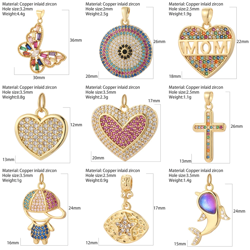 Подвеска-Крест в виде бабочки, Дельфина, сердца, для изготовления ювелирных изделий оптом, серьги, браслет, ожерелье, кристалл, настоящее золото