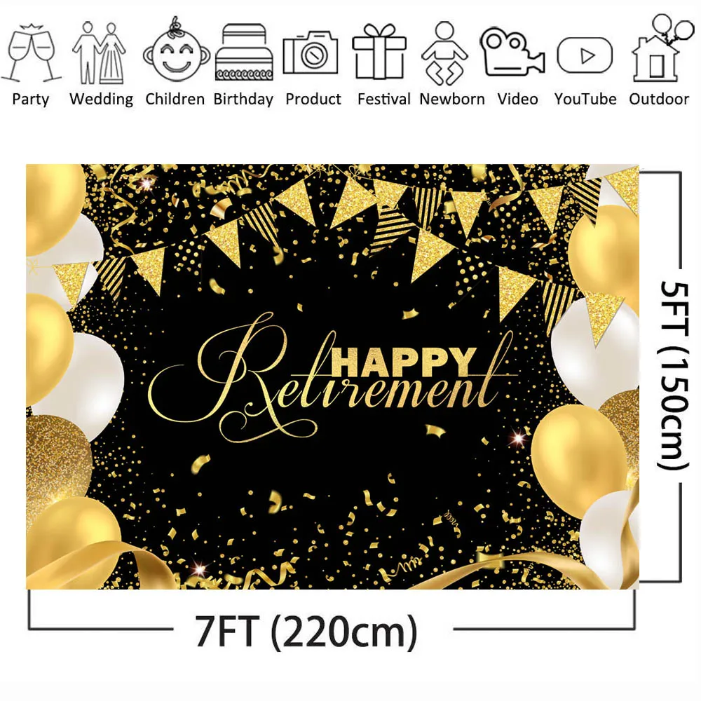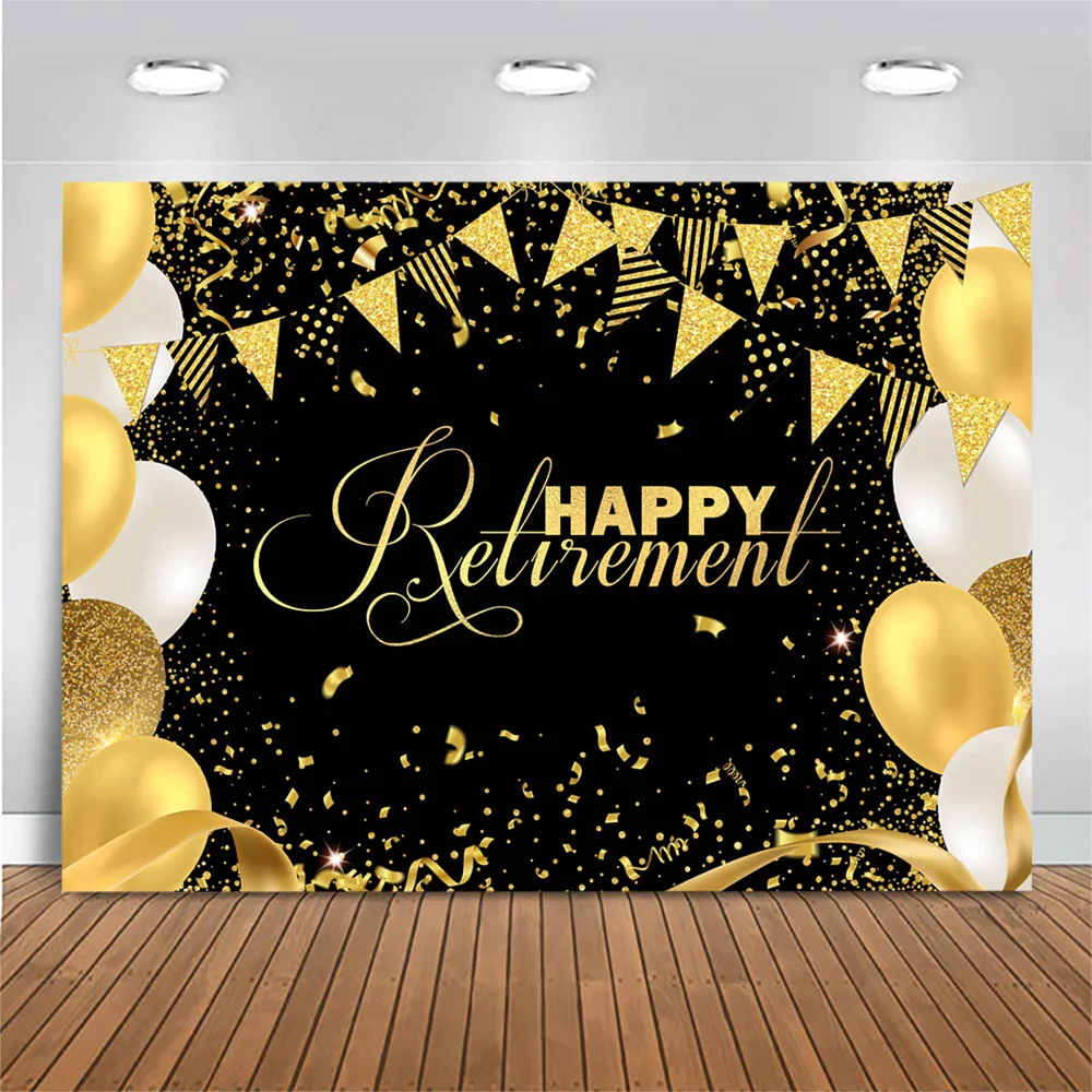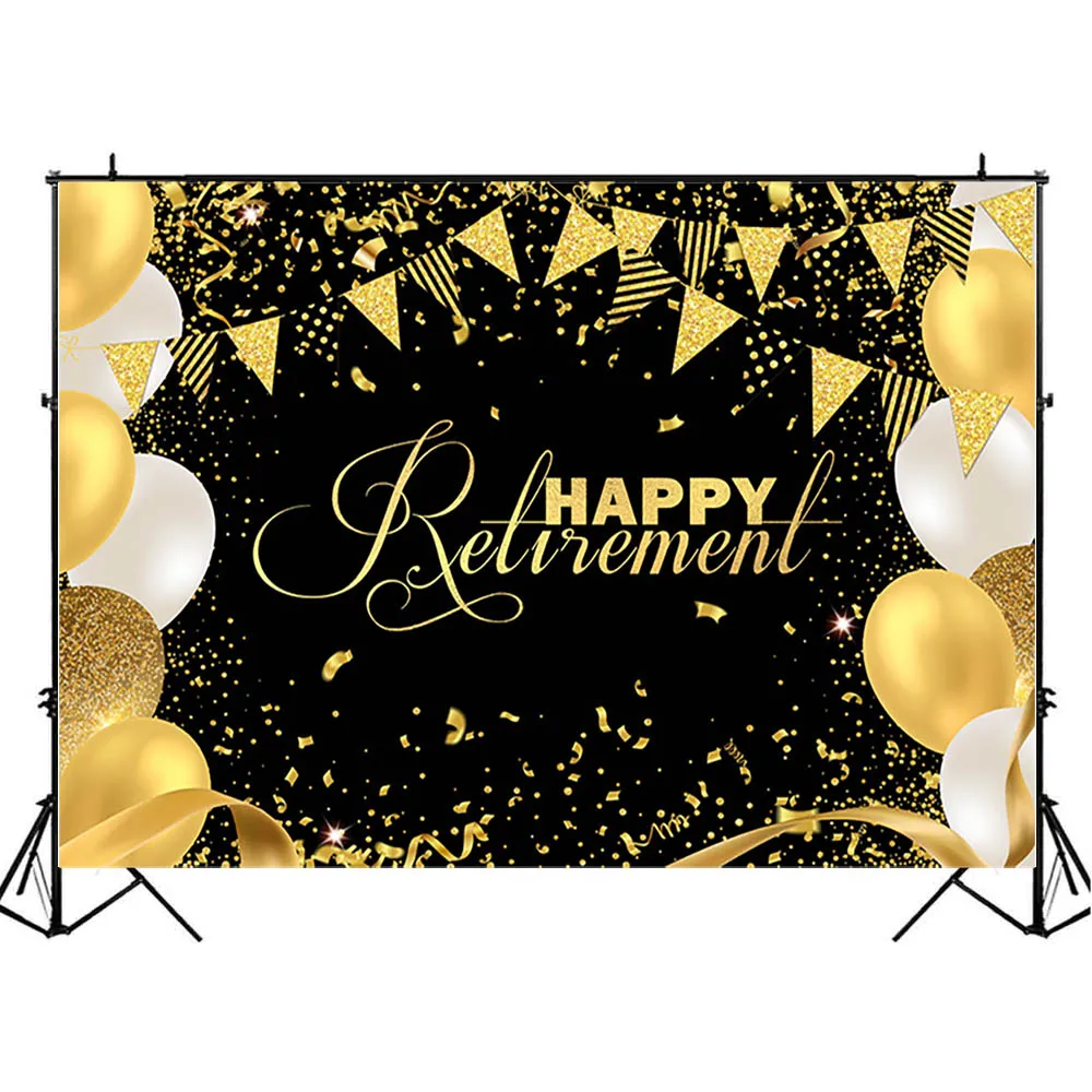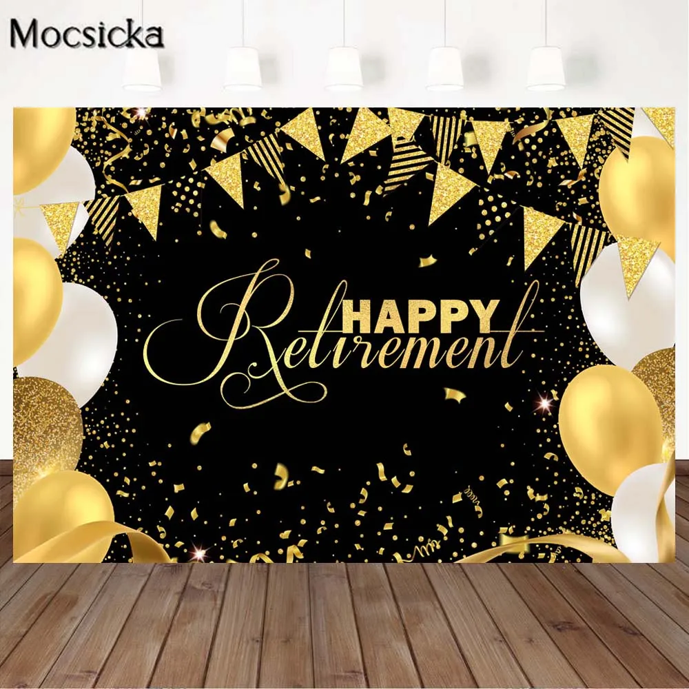 Mocsicka счастливый пенсионный черный фон для фотосъемки Золотой воздушный шар Декор на заказ фон для фотосъемки на день рождения баннер для вечеринки фотосессия