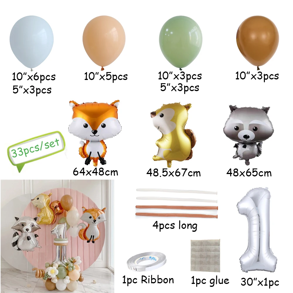 33 шт джунгли воздушные шарики в виде животных набор лиса белка Ежик енотовая фольга шары 30 дюймов номер Globos Дети День рождения ребенка душ Deco