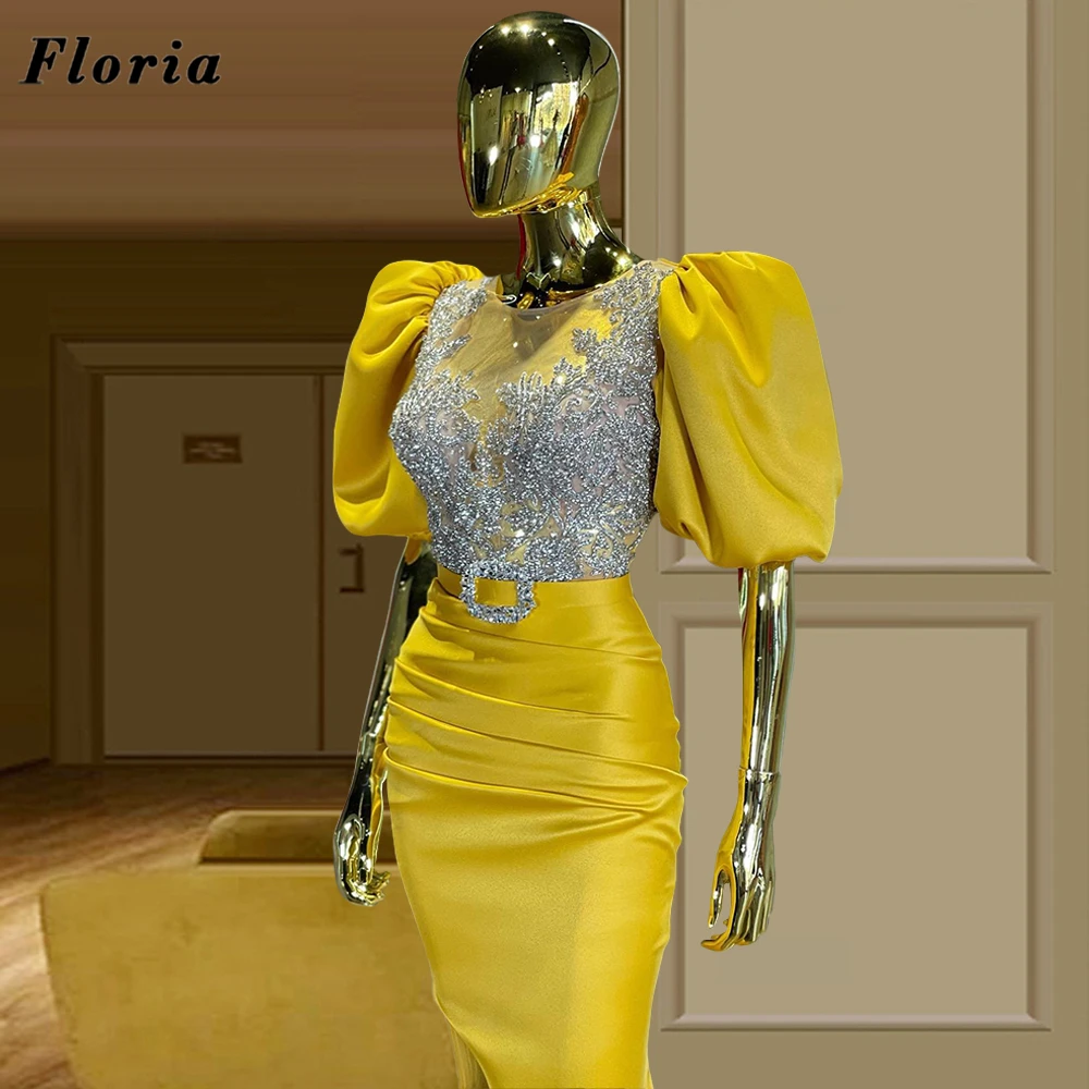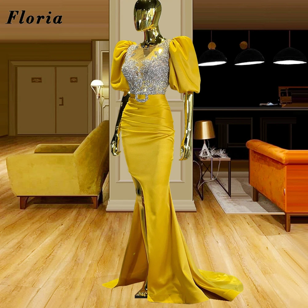 Женское вечернее платье с коротким рукавом, желтое платье с бисером