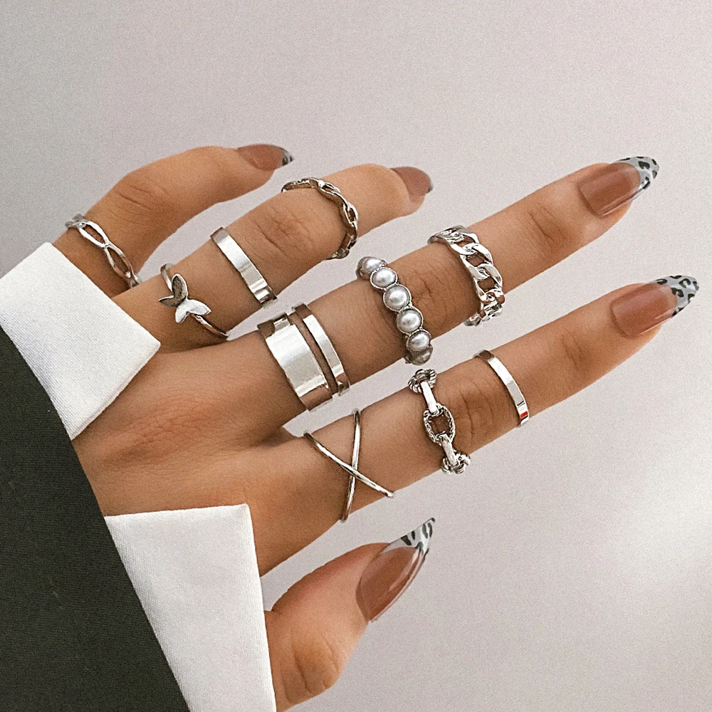 Набор Колец FNIO в стиле хип-хоп для женщин и девушек, простые коль...