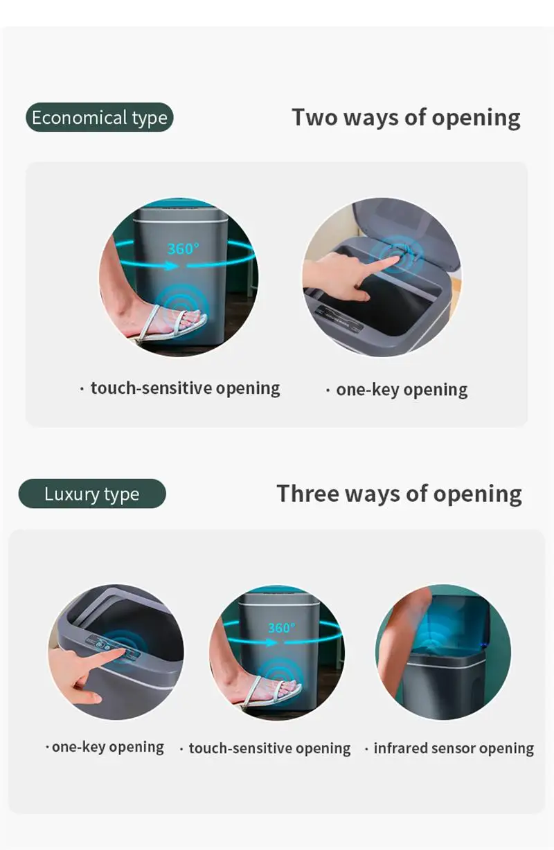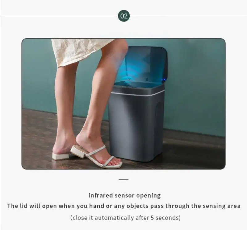 0,3 s смарт-датчик, водонепроницаемый, хорошая герметичность, предотвращает специфический запах, на высоком каблуке, открытые сбоку туфли режим, экономия пространстваУмный датчикРазработанная нами Сенсорная технология уменьшает ненужные отверстия и продлевает срок службы батареи. Если вы держите инфракрасный датчик движения рукой, крышка будет оставаться открытой, обеспечивая удобный пользовательский опыт. Если датчик не может обнаружить какое-либо движение, крышка автоматически закроется через 5 секунд. Если вы хотите держать крышку открытой, просто слегка коснитесь чувствительной к весу кнопки на правой стороне, а затем нажмите кнопку снова, чтобы закрыть ее. Продукт питается от 4 батареек АА (продукт не имеет батареи, вам нужно купить его самостоятельно).ВодонепроницаемостьПередовая Водонепроницаемая технология IPX5 предотвращает повреждение оборудования в воде или влажной среде. Нет пятен воды на поверхности после промывки.Экономьте пространствоДизайн этой корзины очень подходит для ограниченного пространства. Продукт имеет современный Овальный дизайн, который отлично смотрится в ванных комнатах, кухнях и других комнатах, занимая меньше места.Материал изделия: абс + ПП + электронные компонентыКонфигурация продукта: контейнер для мусора * 1Руководство: китайский и английскийЕмкость аккумулятора: 1200 мАчНапряжение: 5 ВМощность: 1,5 w