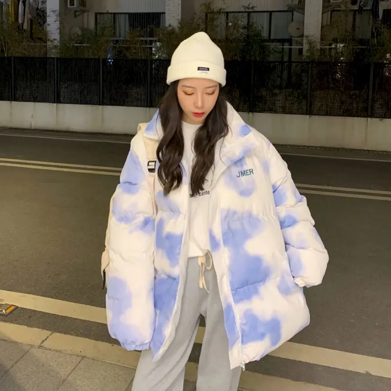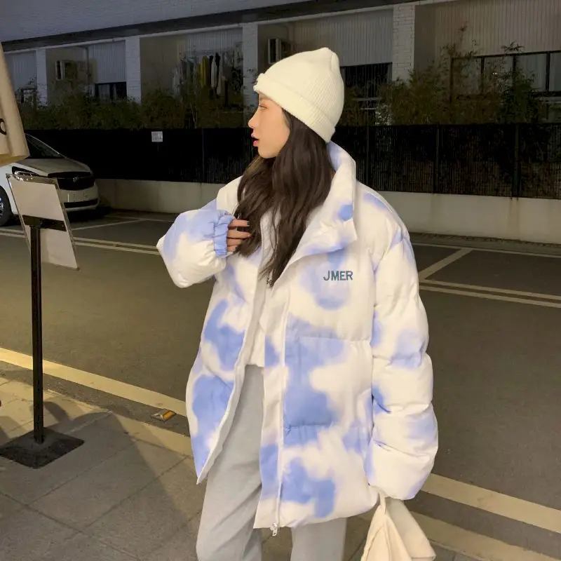 Белое Облачное плотное Женское зимнее пальто, парки оверсайз в стиле Харадзюку, женские и мужские куртки в Корейском стиле, одежда с воротником-стойкой, куртки, нет