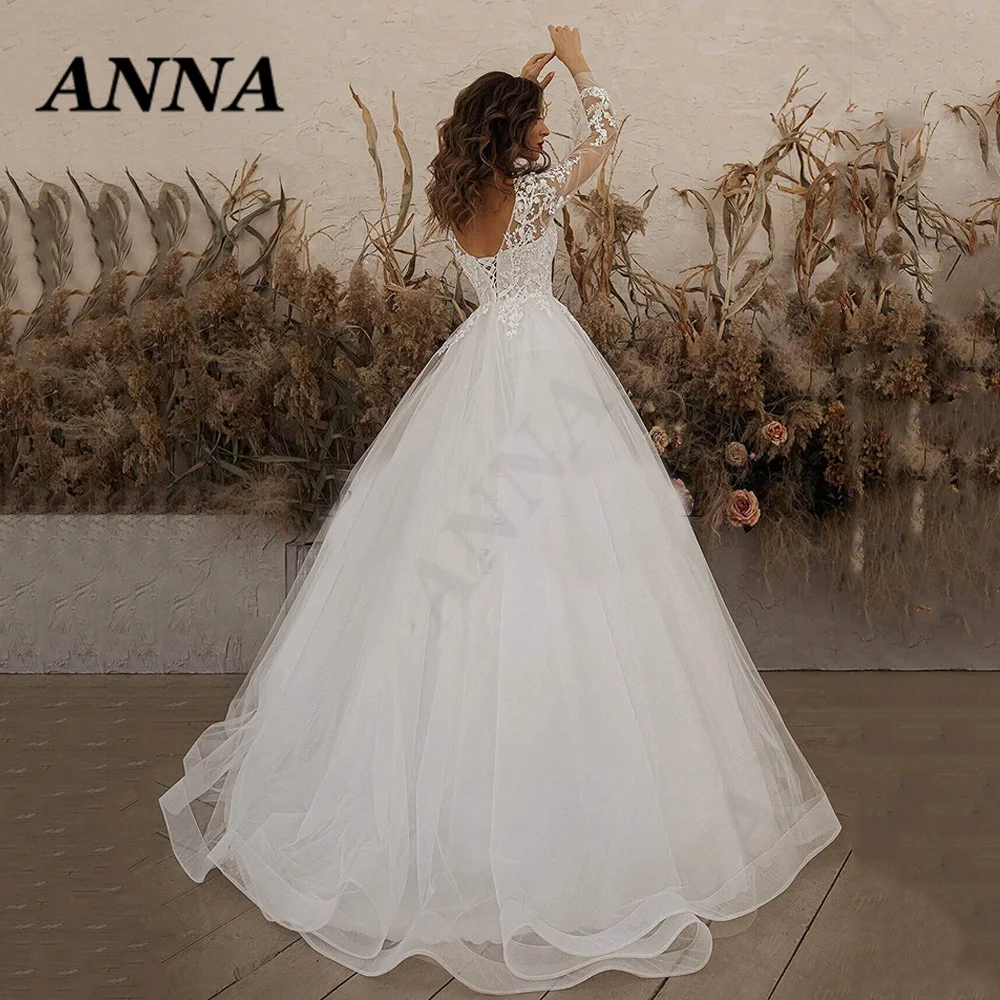 Анна красота свадебное платье 2021 элегантный o-образным вырезом Tull...US $683,00