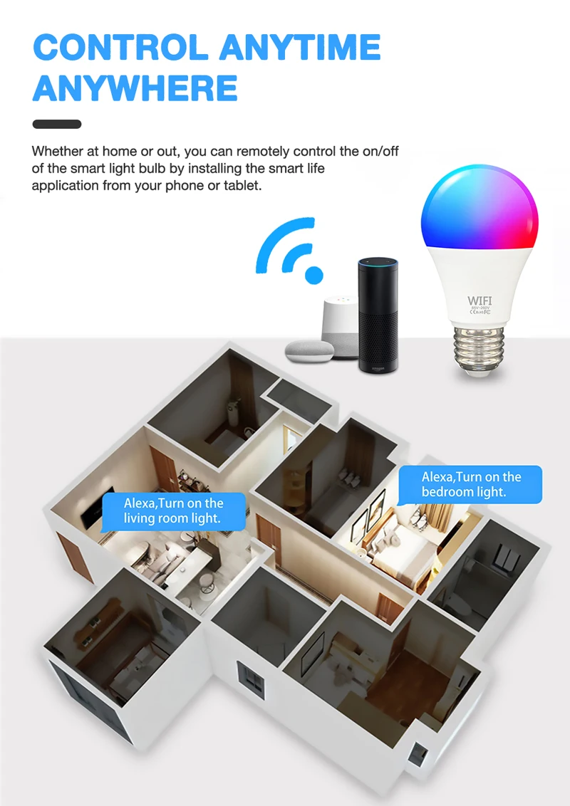 Функция голосового управления: и управление этими умными лампами через ваш голос с Amazon Alexa, Google Assistant. Просто дайте команду включить/выключить или затемнить/осветить цвет лампы.