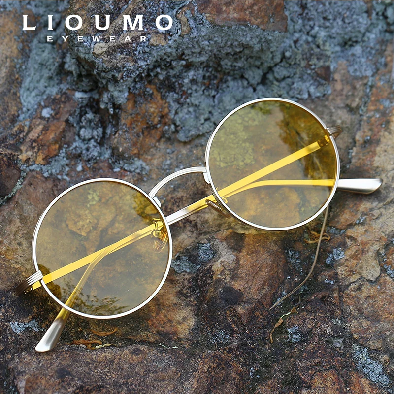Солнцезащитные очки LIOUMO поляризационные для мужчин и женщин UV-400, винтажные круглые, в стиле стимпанк, ретро-рок, с желтыми линзами
