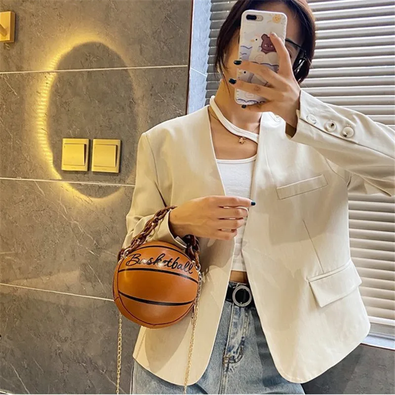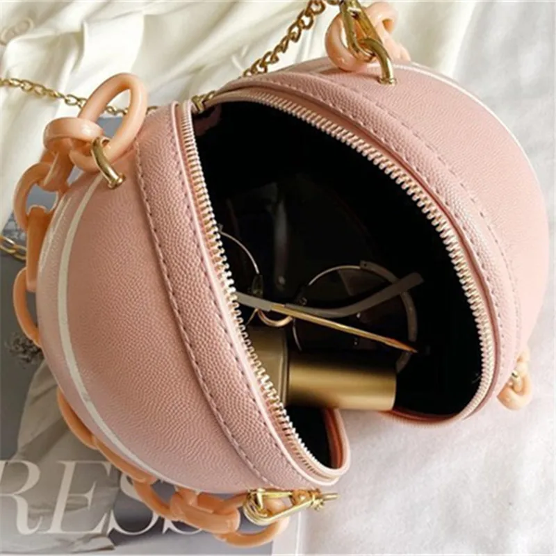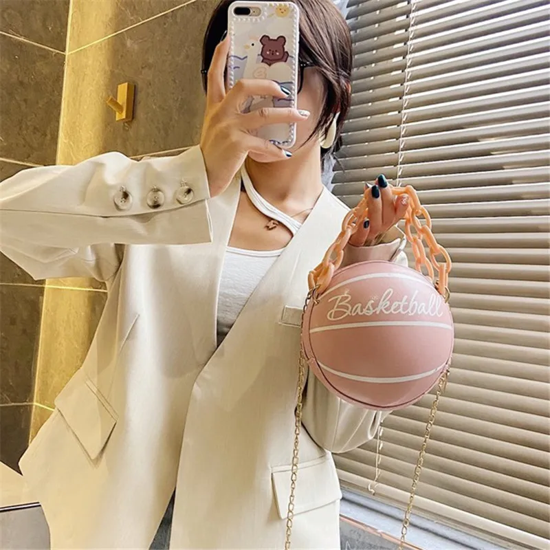 Модные маленькие круглые сумки, женская сумка-тоут на плечо, новинка 2022, баскетбольные сумки, Высококачественная женская сумка-мессенджер из искусственной кожи на цепочке