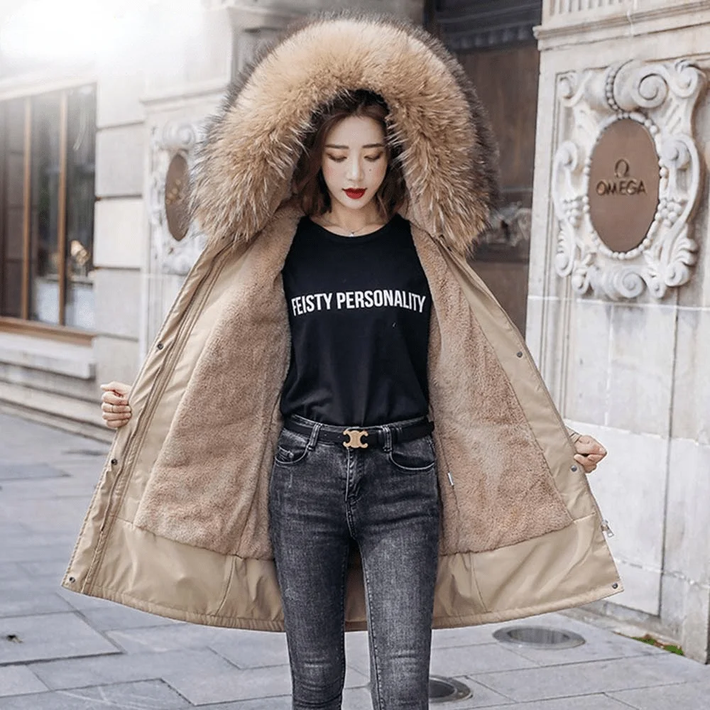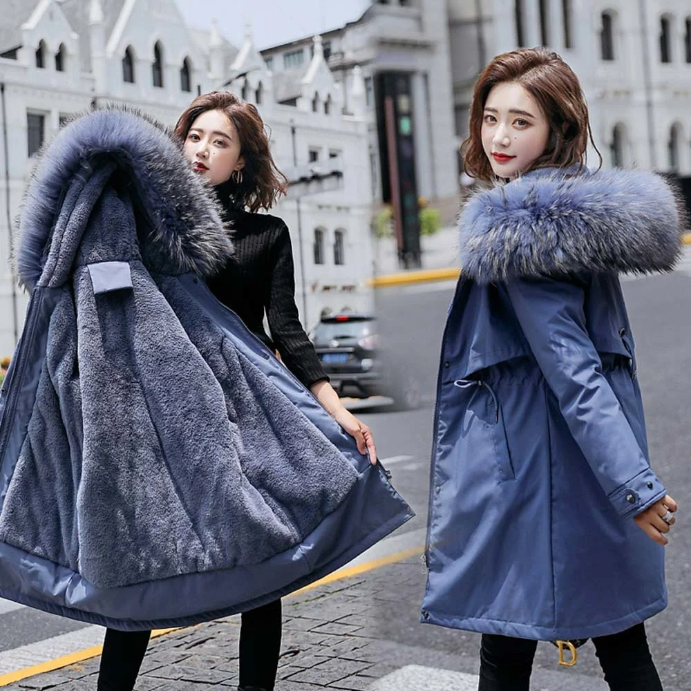 Новинка 2021, теплая длинная парка с меховой подкладкой, зимняя куртка, женская одежда, Женское зимнее пальто средней длины с капюшоном размером 6xl