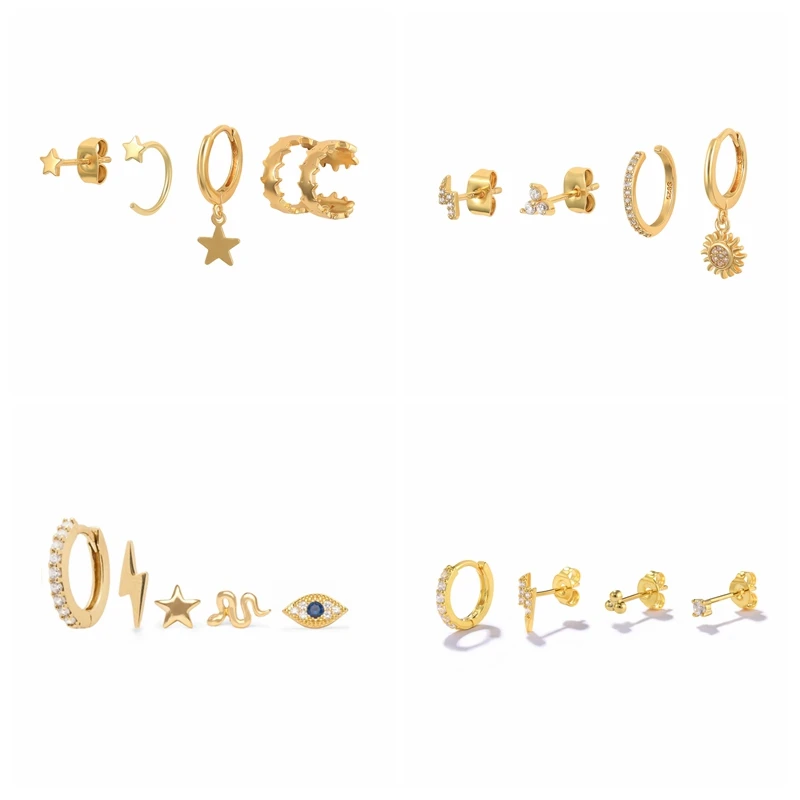 Женские серьги-кольца CANNER из 18-каратного золота, позолоченные украшения для пирсинга геометрической формы, декор луна, звезды, цветок, сердце, ювелирные изделия
