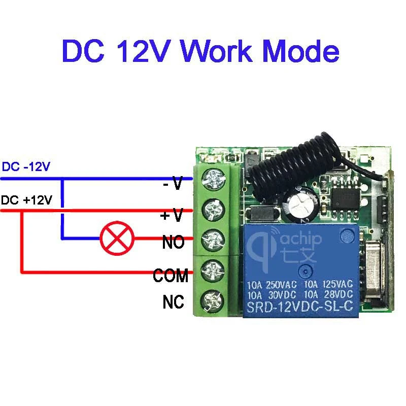 Беспроводной релейный модуль постоянного тока 12 В в 1 канал 433 315 МГц Радиочастотный пульт дистанционного управления Переключатель генератор приемник плата управления MCU RF Freque