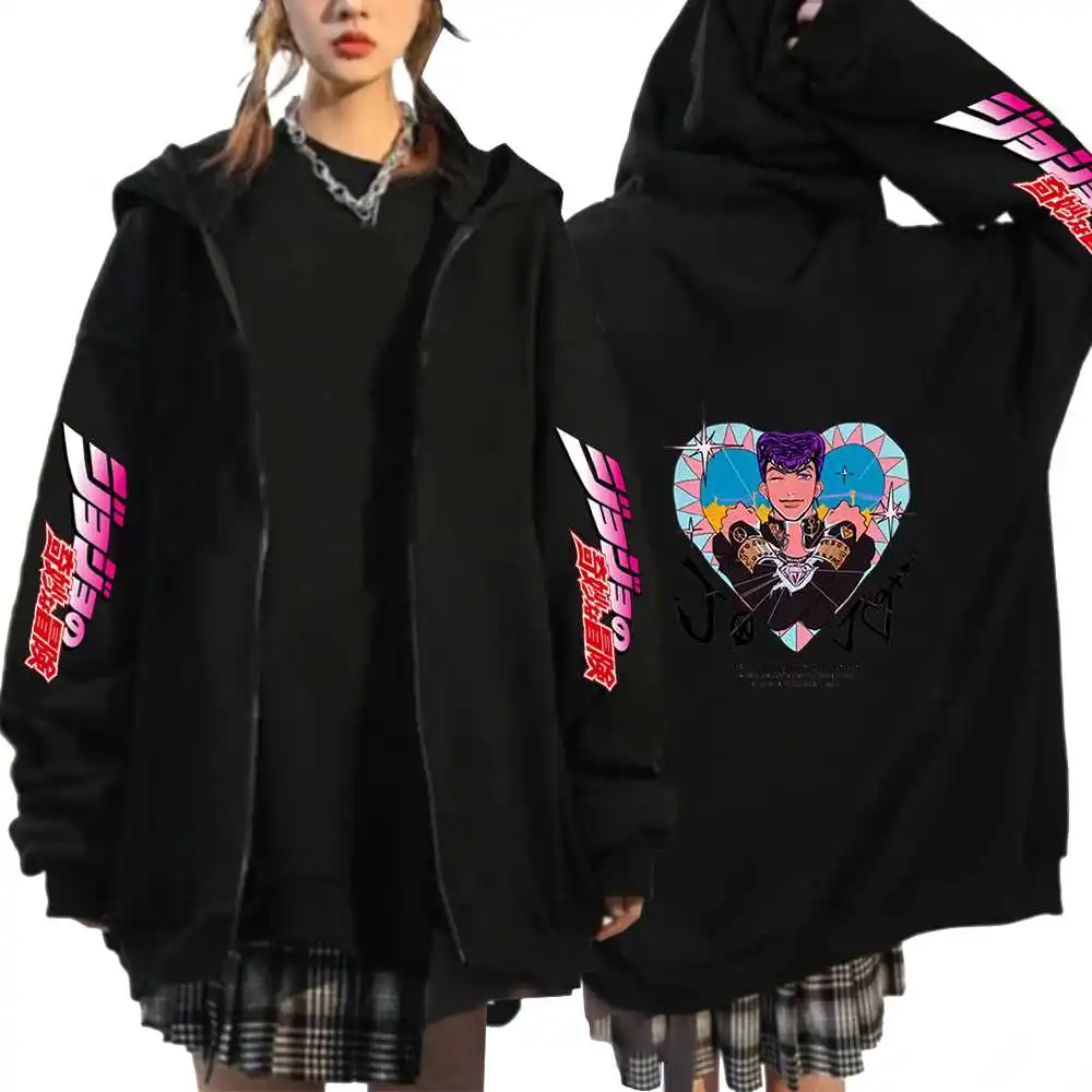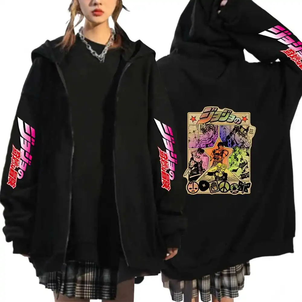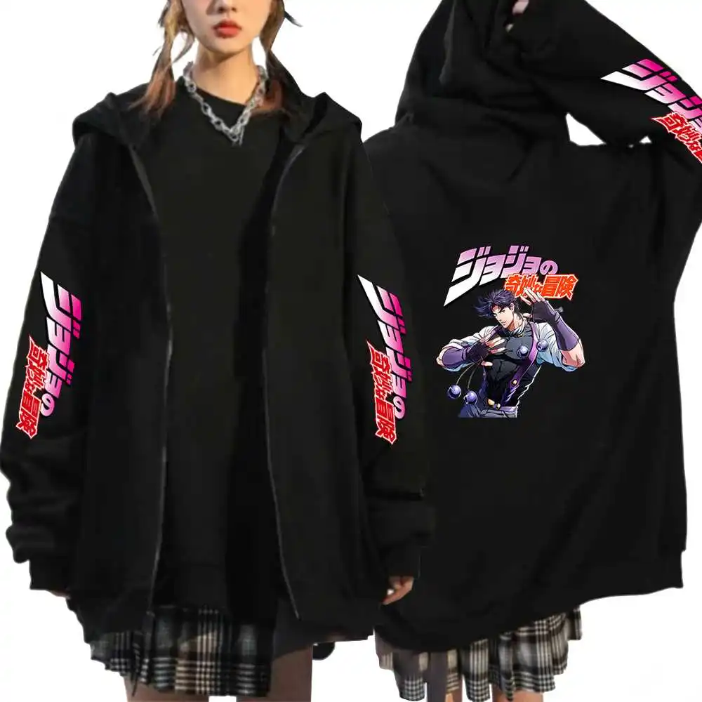 Толстовка с капюшоном на молнии для мужчин и женщин, невероятные приключения Джоджо, мужские куртки оверсайз, пальто с длинным рукавом, флисовые худи на молнии с аниме