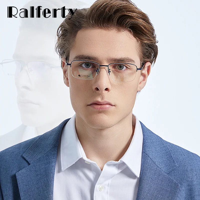 Ralferty ультра-светильник из чистого титана, мужские оправы для очков, Классические полуоправы 0 диоптрий по рецепту, оптические оправа для очков при близорукости