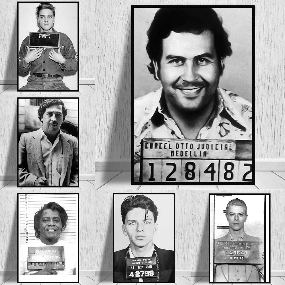 Винтажный черно-белый постер с изображением знаменитого преступника, постеры с улыбкой в стиле HD, принты, Пабло, Классическая Картина на холсте, искусство, украшение для дома